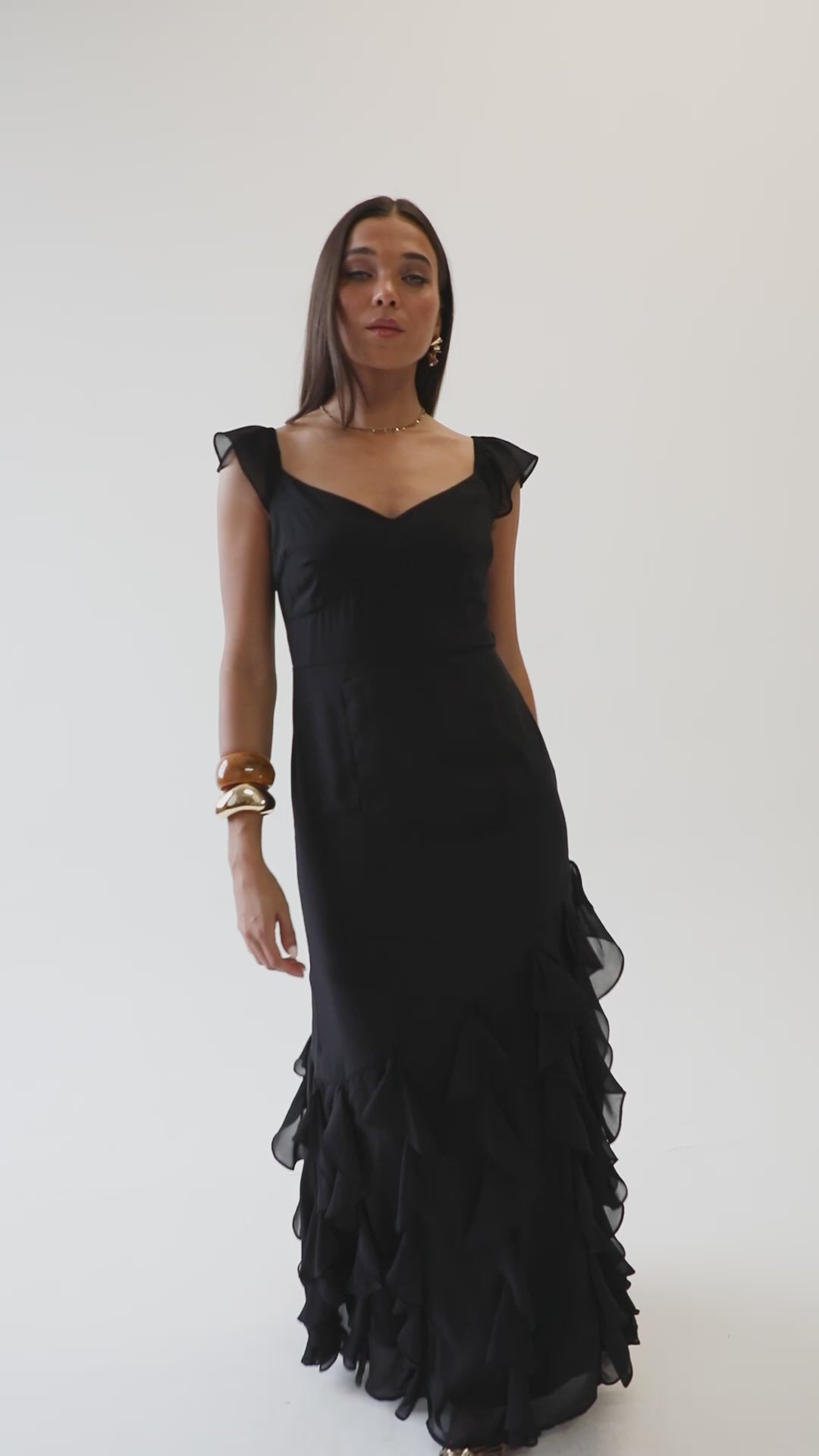 Anaya With Love Recycled Black Ruffle Maxi Dress