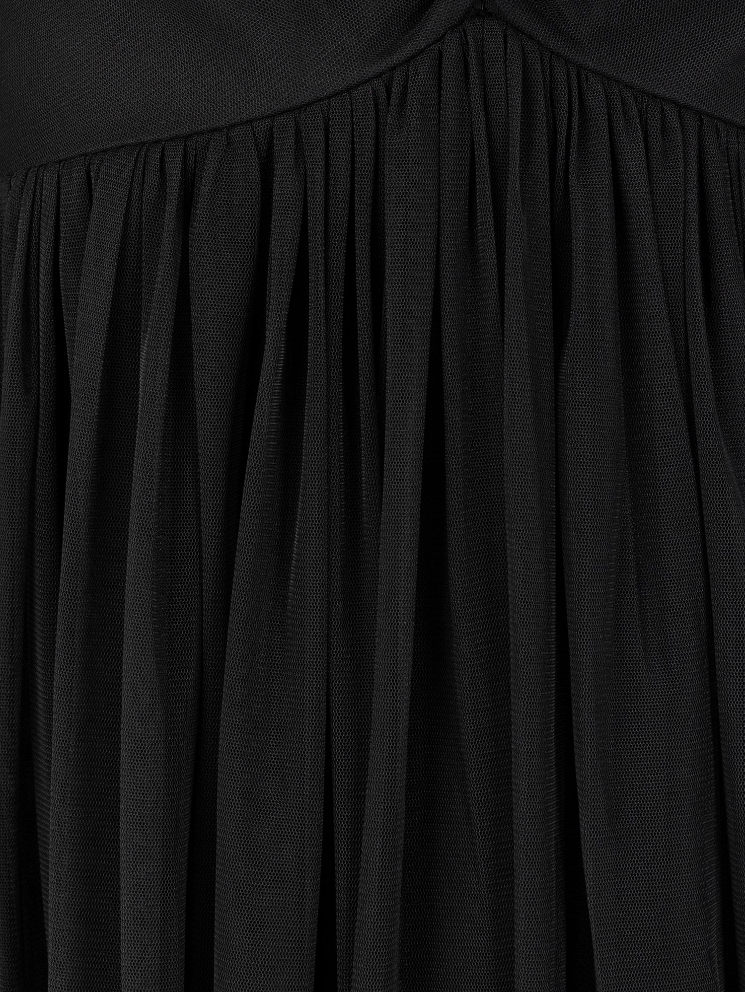 At Anaya with Love each item is consciously designed and made with 100% recycled fabric allowing you to embrace both style and sustainability. A true bridesmaid style that?s both elegant and flattering. Anaya?s craftsmanship shines through in the twist detail, created by gathering recycled tulle at the base of the V-neckline, which sculpts a defined waistline and flows into a classic A-line silhouette. Simply complement this short-sleeve black maxi dress with black strappy heels and silver jewellery.