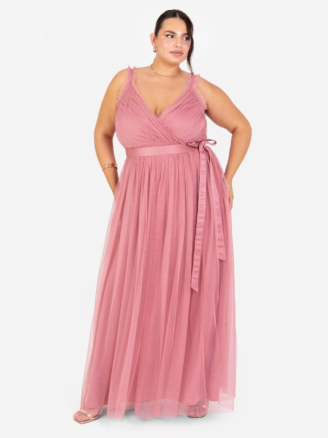 Anaya With Love Recycled Dusty Rose Frill Detail Faux Wrap Strappy Maxi Dress