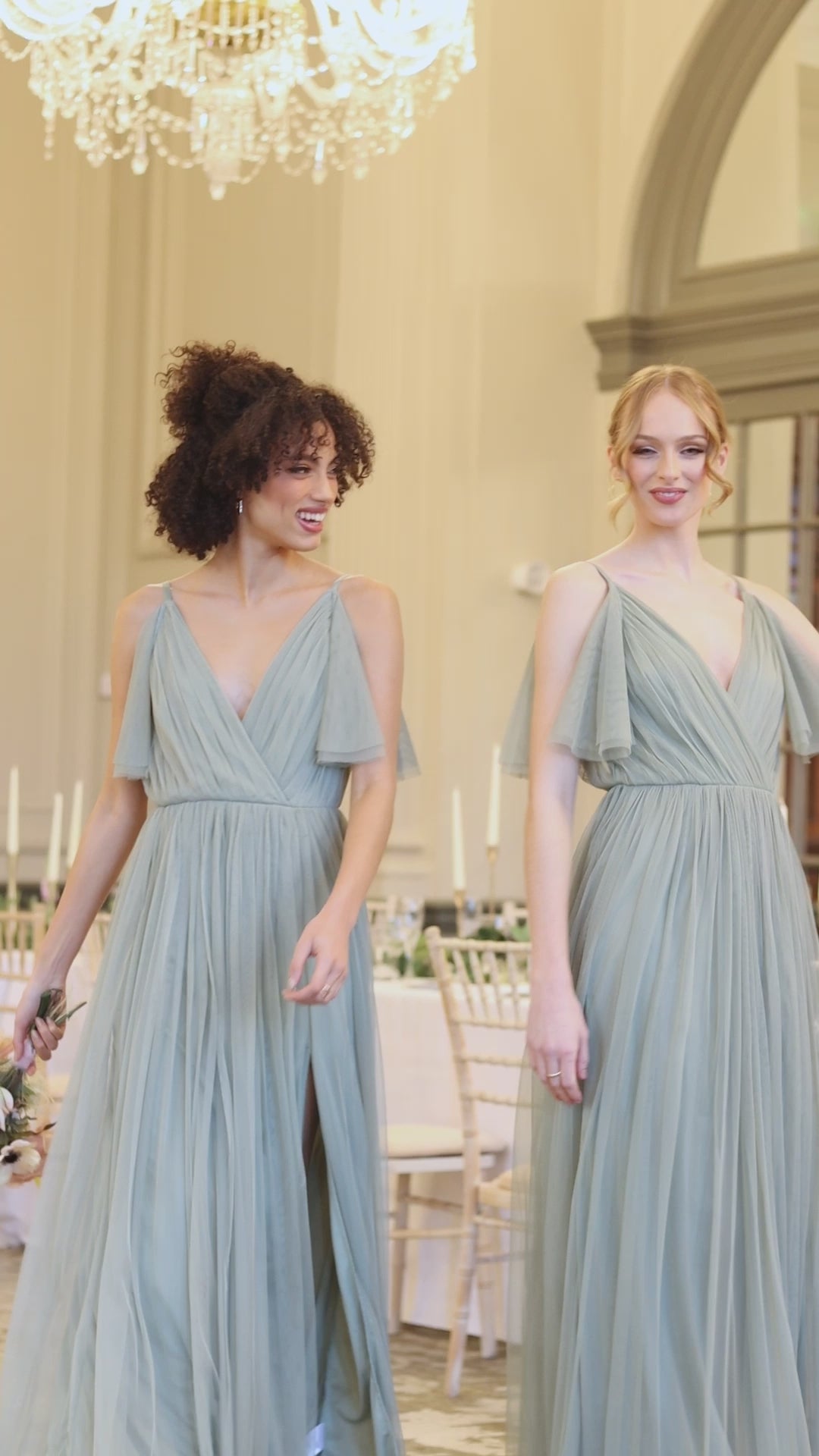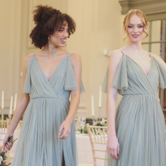 At Anaya with Love each item is consciously designed and made with 100% recycled fabric so you can look great and do good. A simple cut in a showstopping shade forms an elegant dress perfect for special events. Crafted from recycled tulle gathered into a strappy faux wrap bodice with a classic V neckline and additional tulle ruffles falling from the straps. Signature floor sweeping skirt with thigh high split add to the refined look. Simply style this maxi dress with shimmering accessories and strappy heels.