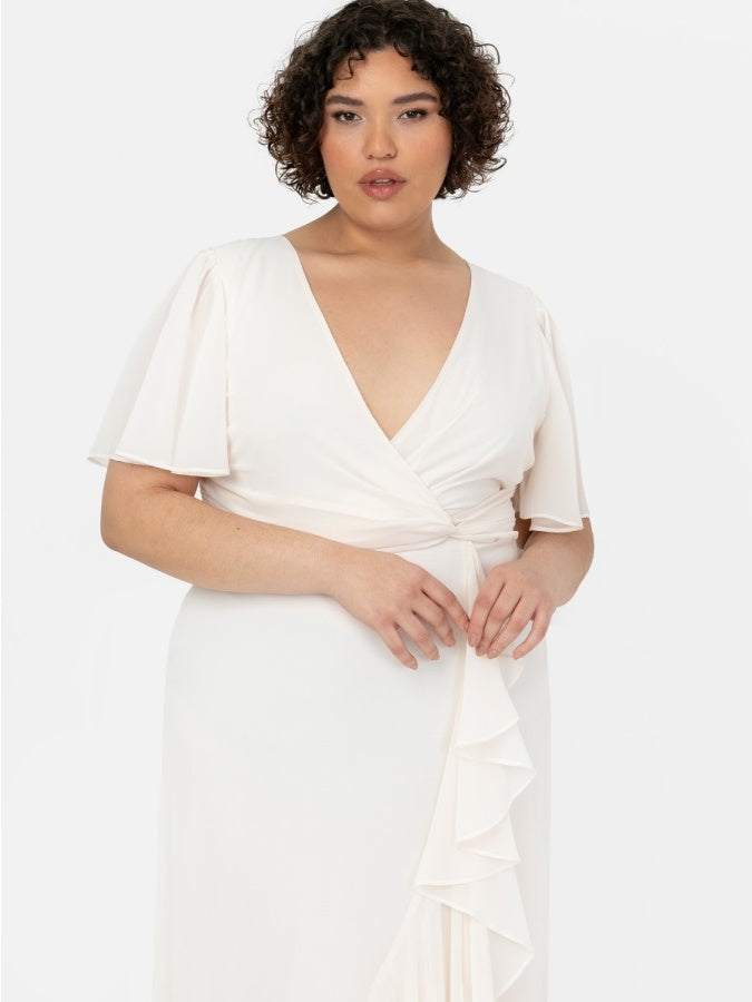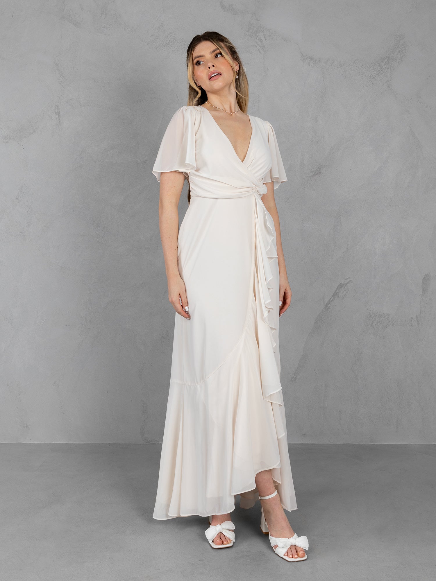 Anaya With Love Recycled Ivory Faux Wrap Ruffle Maxi Dress