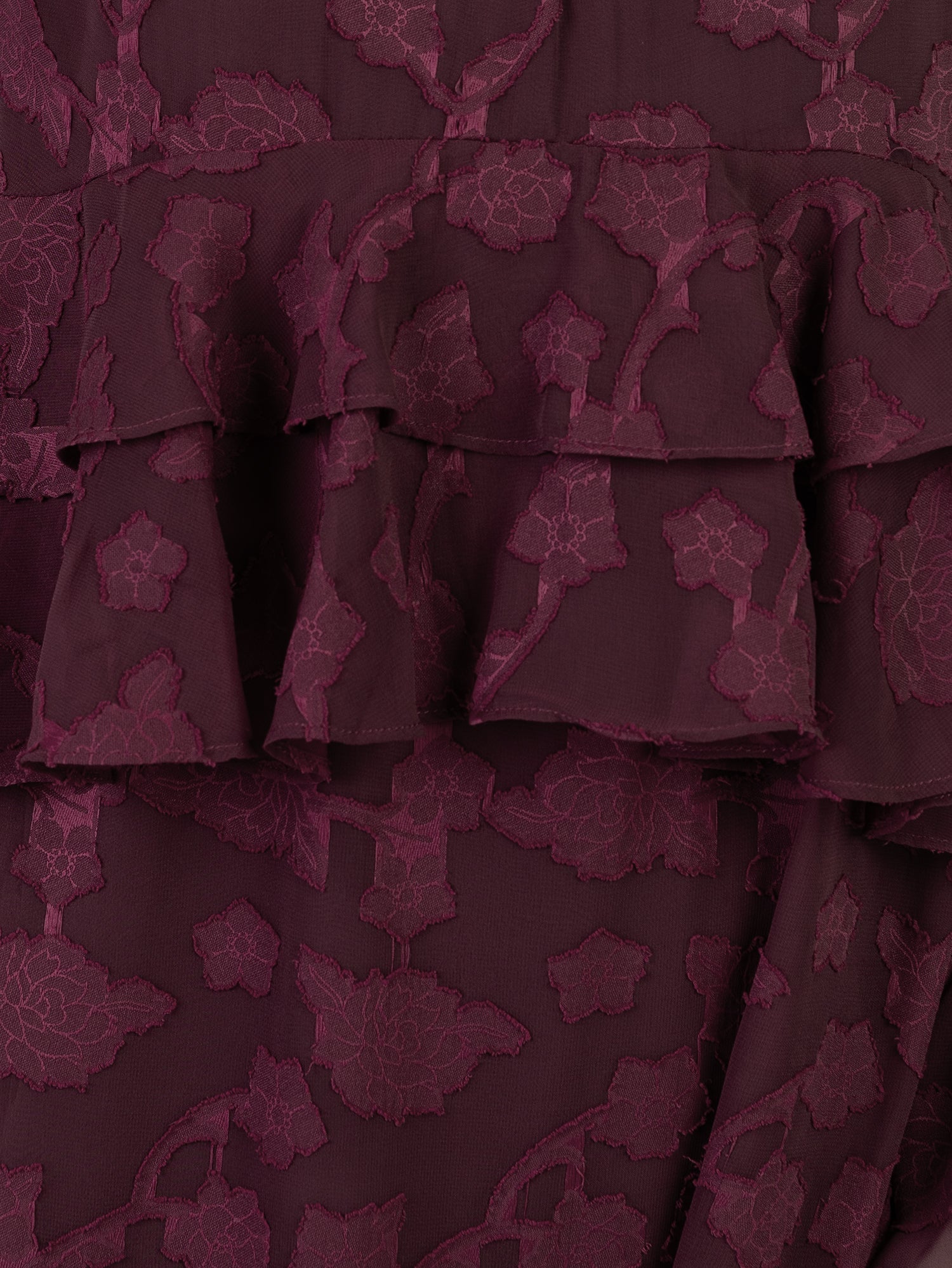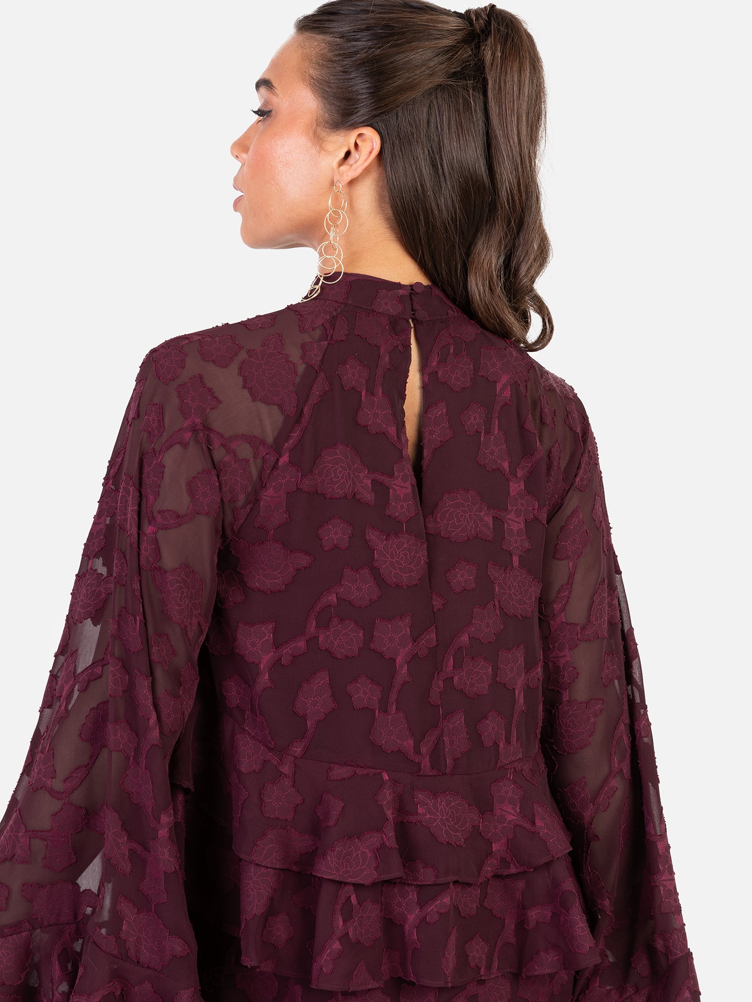 Anaya With Love Recycled Maroon Floral Burnout Flared Long Sleeve Shift Mini Dress