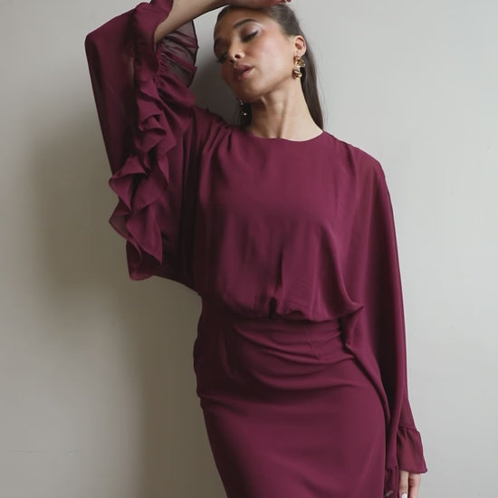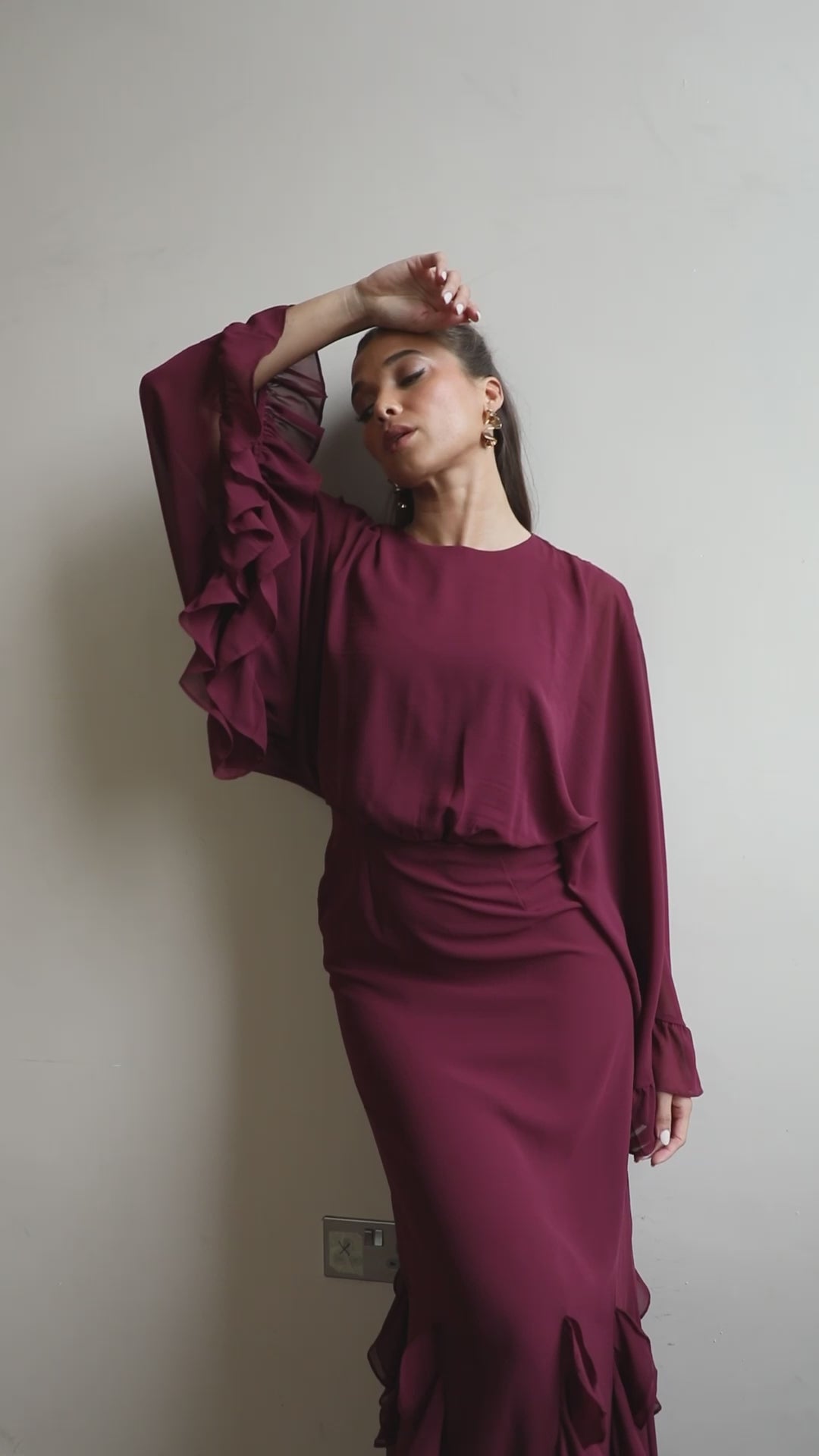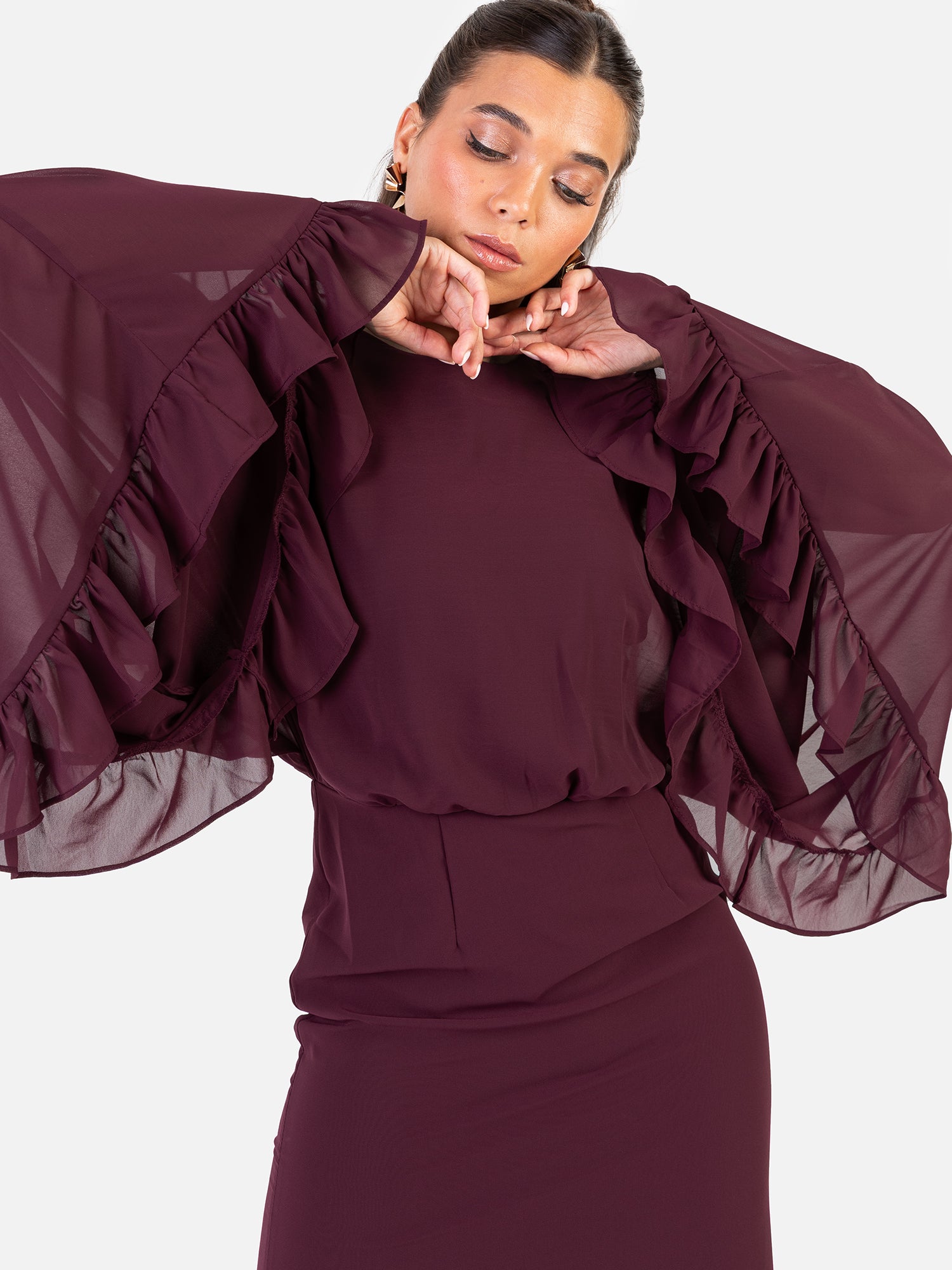Anaya With Love Recycled Maroon Oversized Ruffle Sleeve Maxi Dress