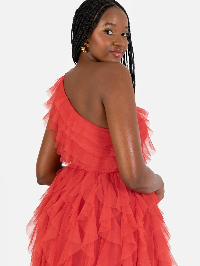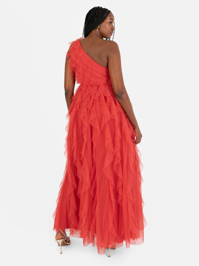 Anaya With Love Recycled Red Waterfall One Shoulder Maxi Dress