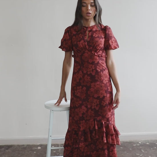 Anaya With Love Recycled Rust Floral Short Sleeve Maxi Dress