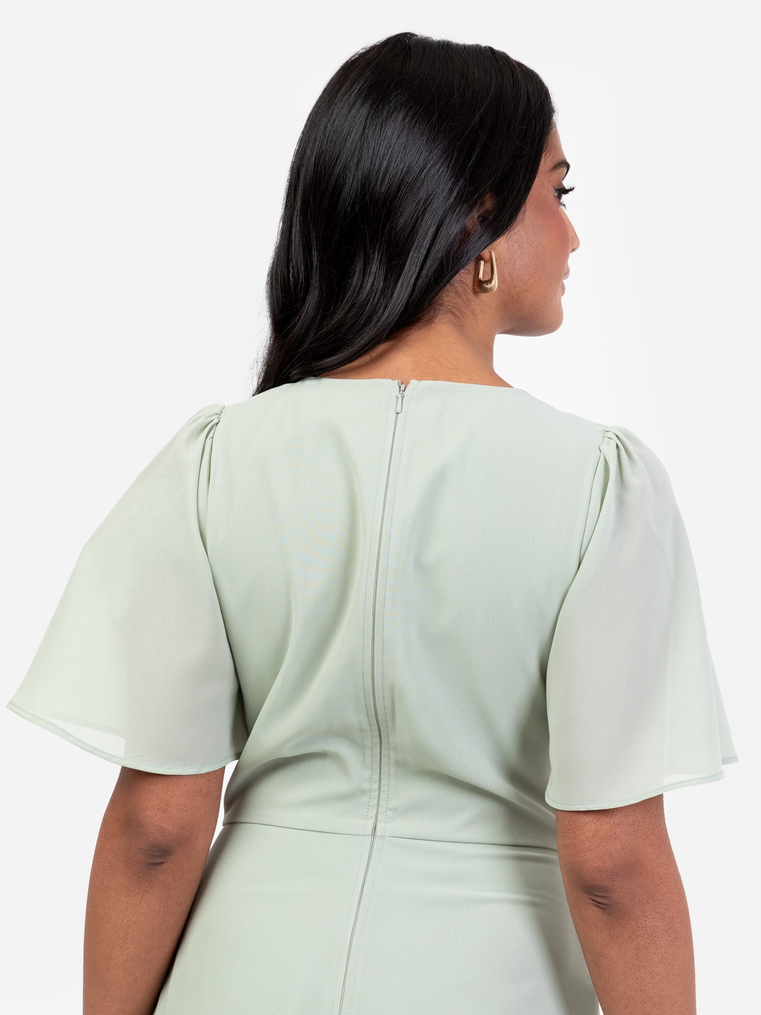 Maya Sage Green Floral Embellished Short Sleeve Maxi Dress with Skirt Split