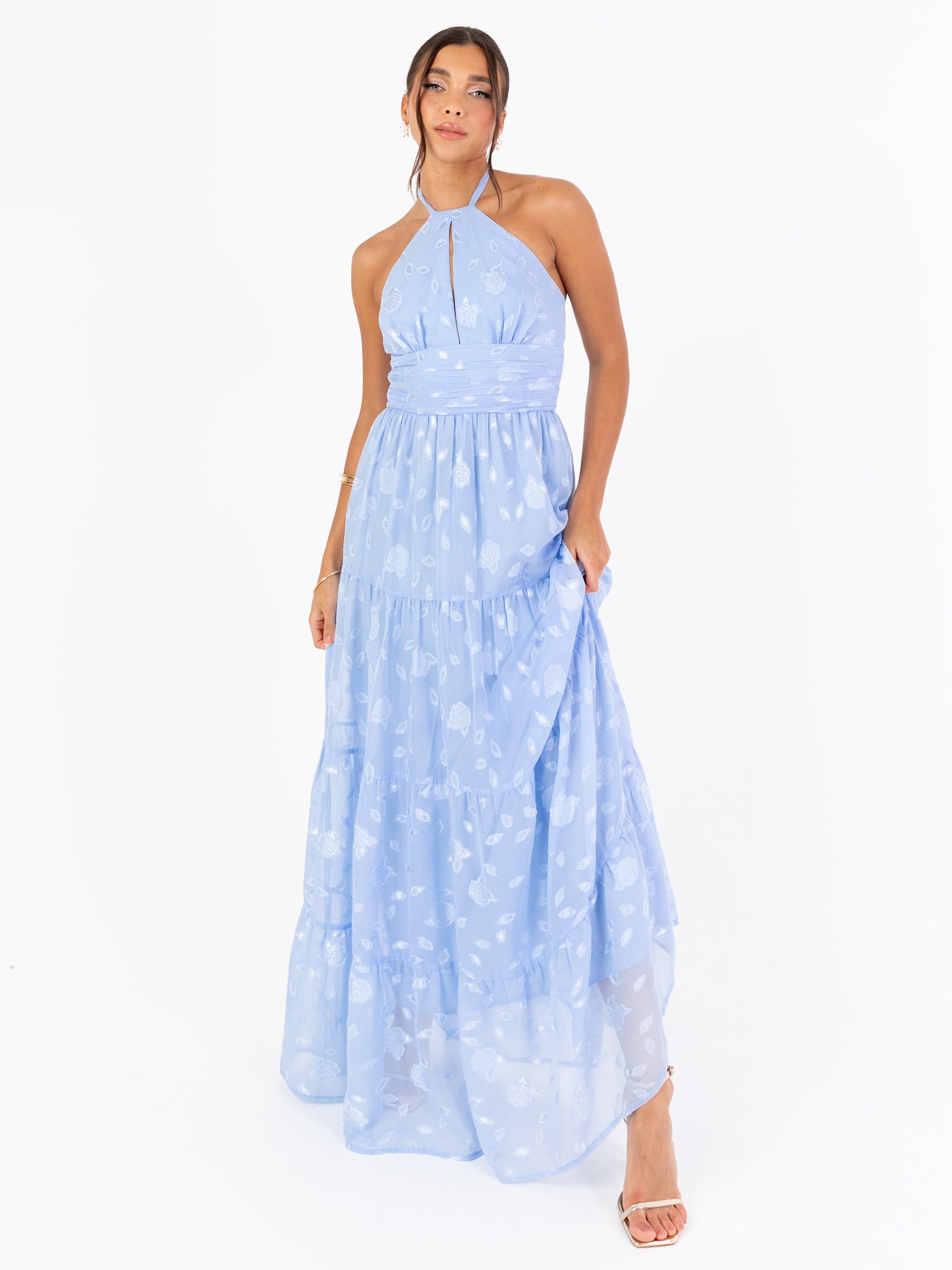 Maya Light Blue Floral Self-Tie Halter Neck Maxi Dress