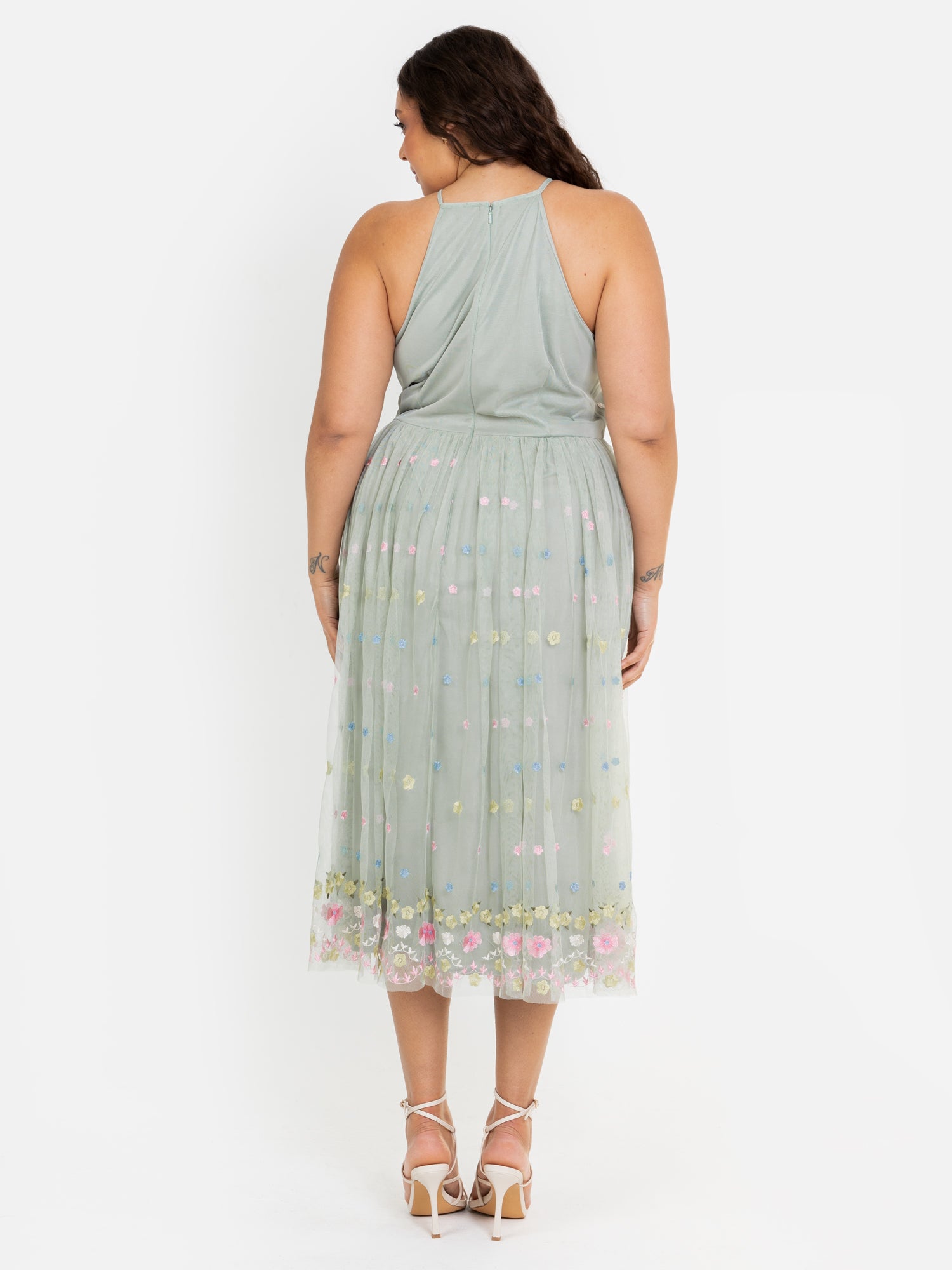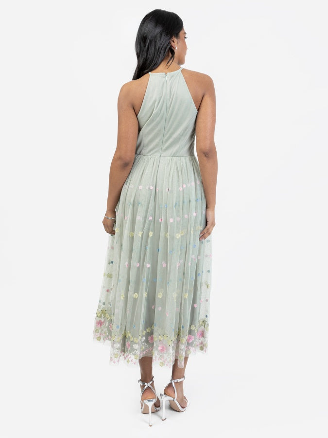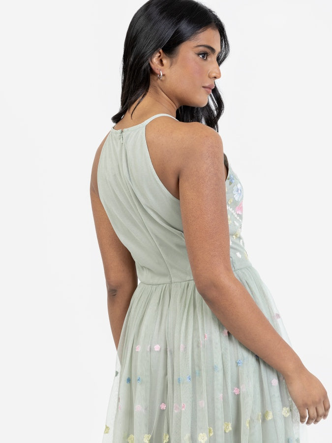 Maya Sage Green Floral Embroidered Halter Neck Midaxi Dress
