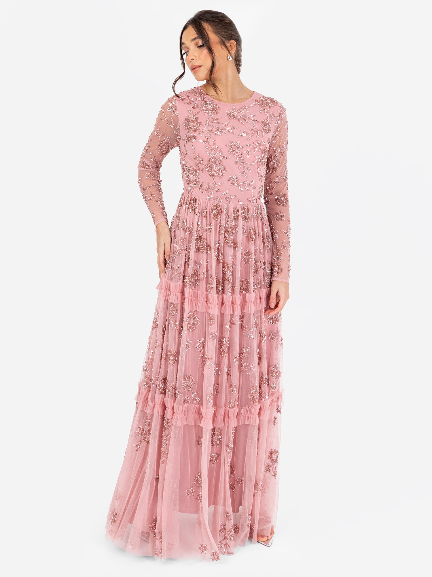 Maya Pink Floral Embellished Long Sleeve Maxi Dress
