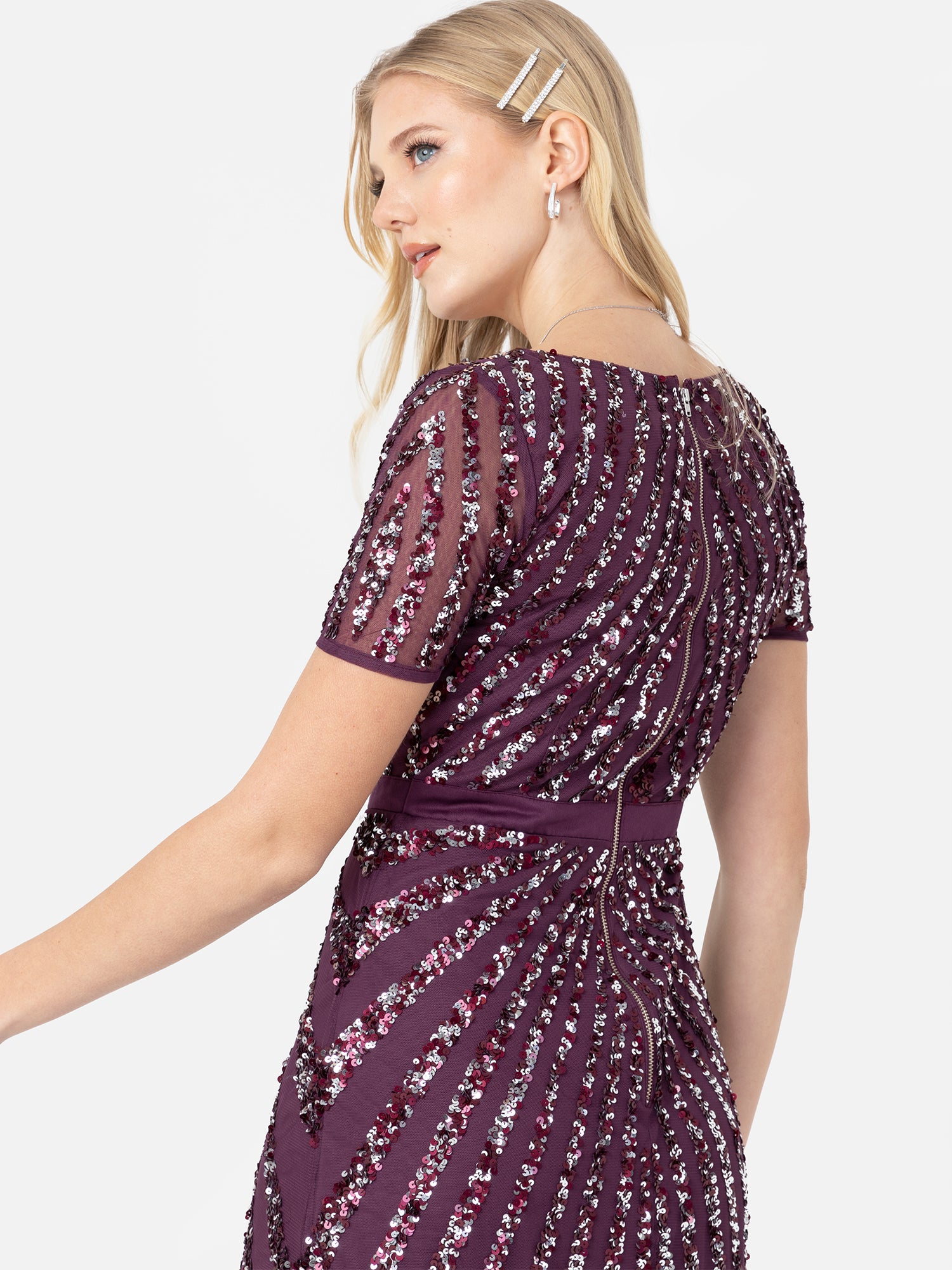 Maya Berry Short Sleeve Stripe Embellished Maxi Dress
