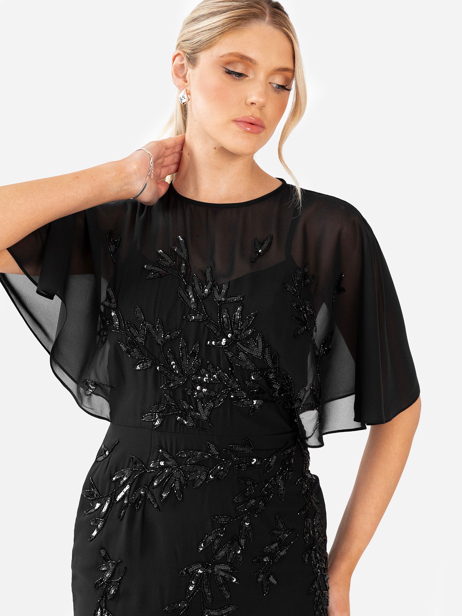 Maya Black Floral Embellished Angel Sleeve Maxi Dress