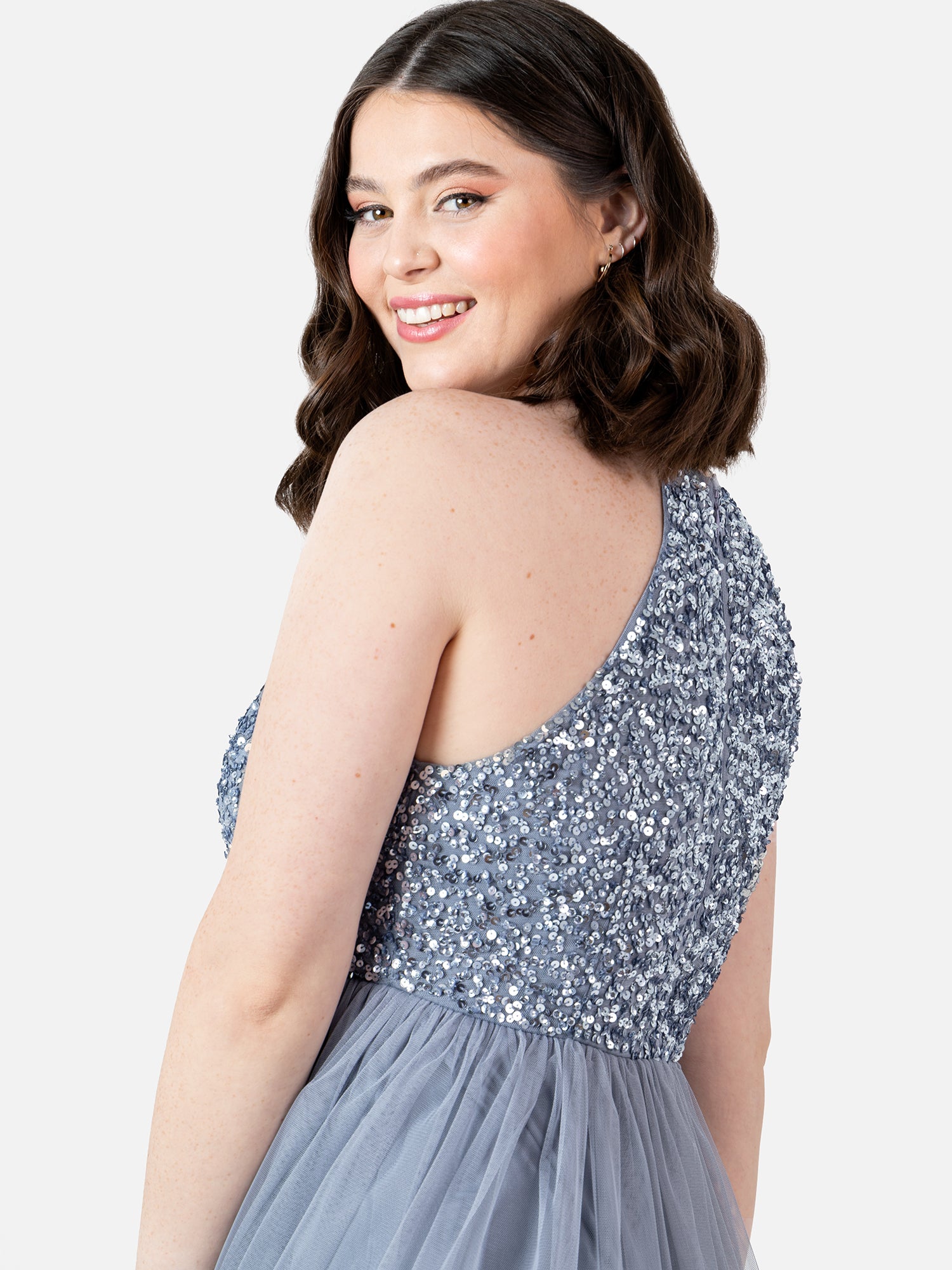 Maya Dusty Blue Embellished Halter Neck Midi Dress