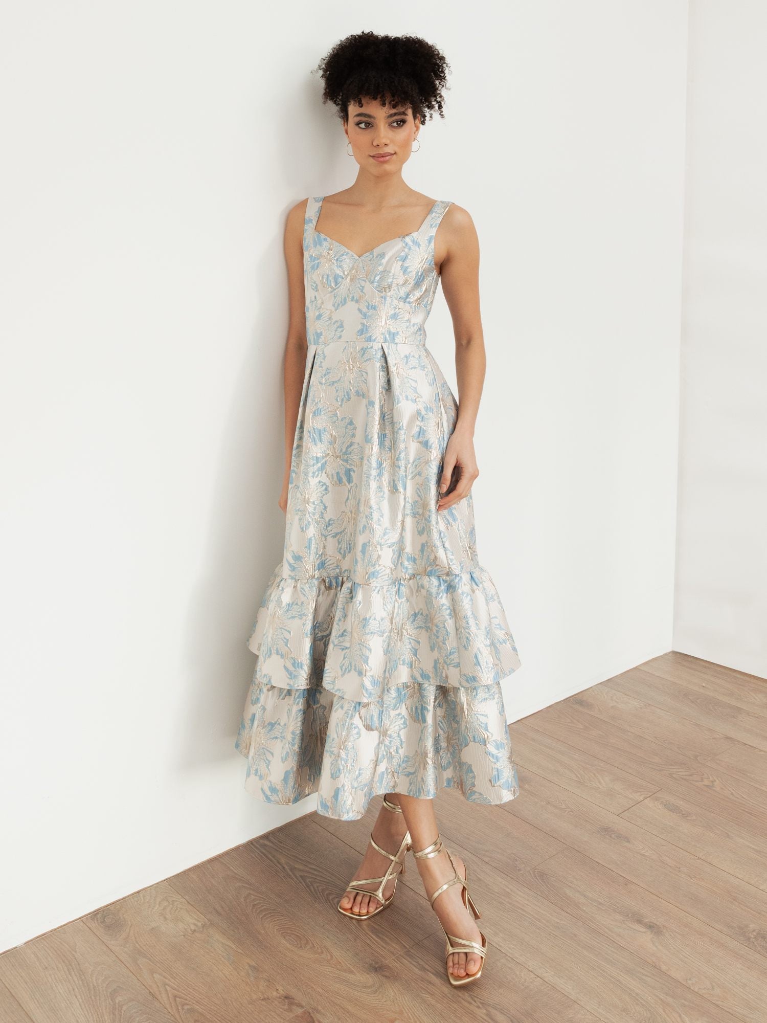 Maya Blue Floral Jacquard Strappy Midi Dress