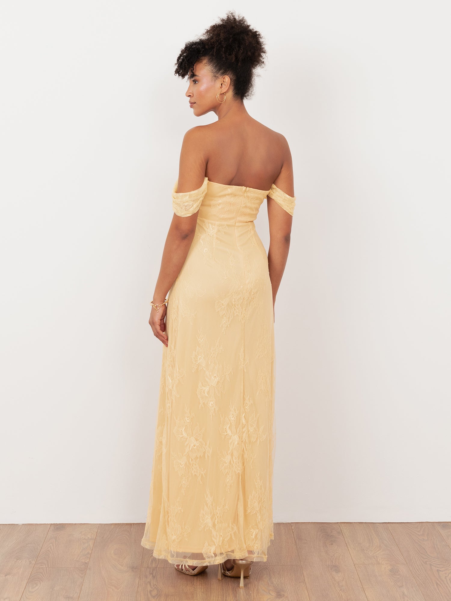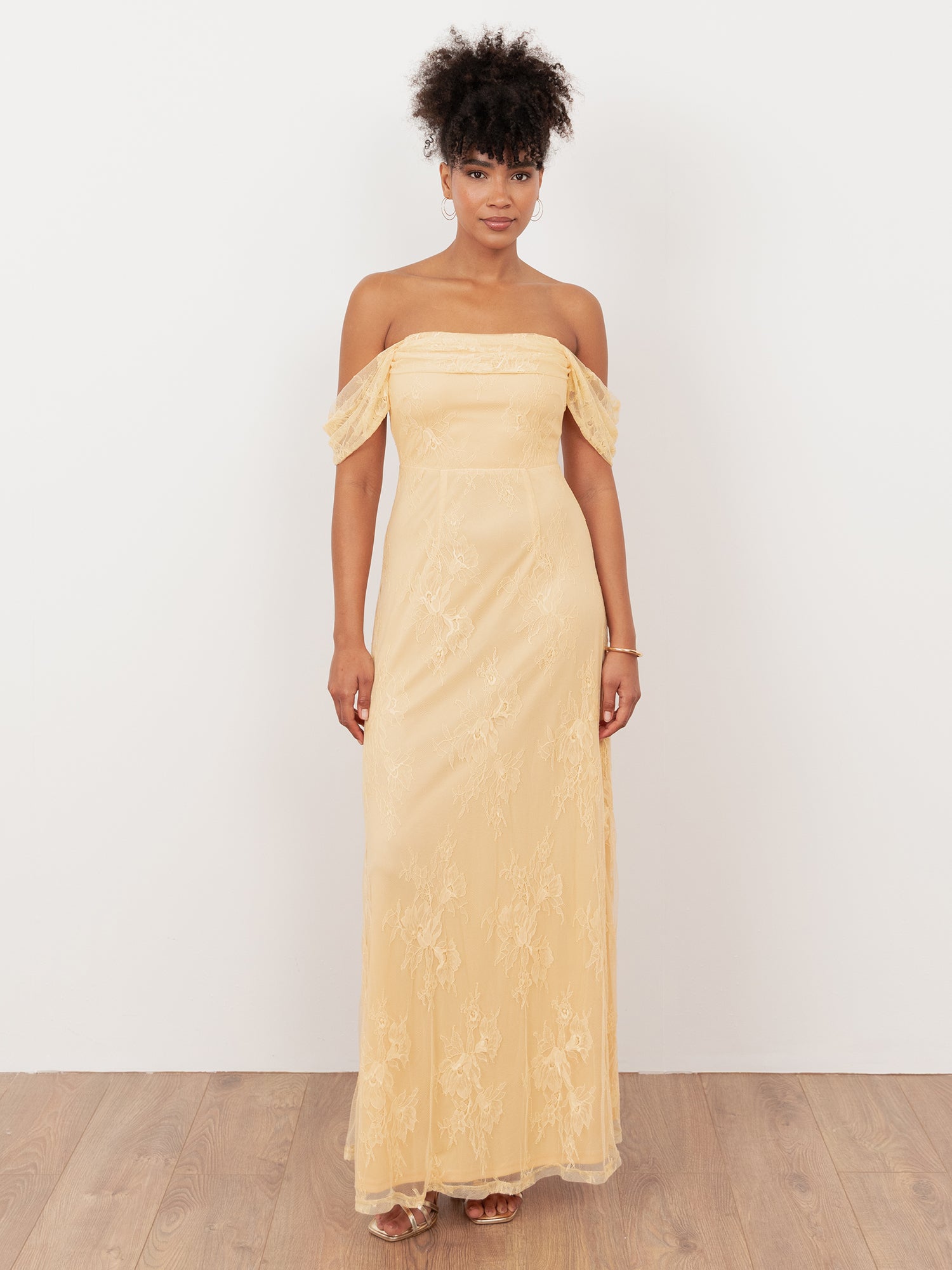 Maya Buttercream Lace Bardot Maxi Dress