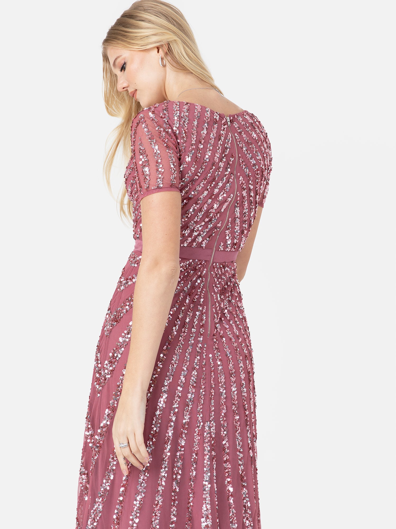 Maya Desert Rose Short Sleeve Stripe Embellished Maxi Dress