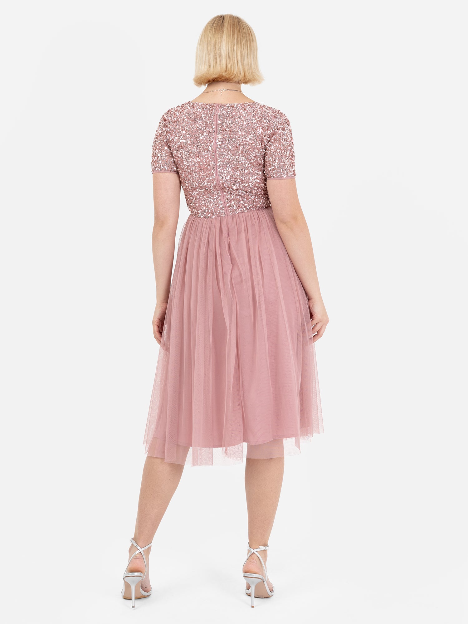 Maya Dusty Pink V Neckline Embellished Midi Dress