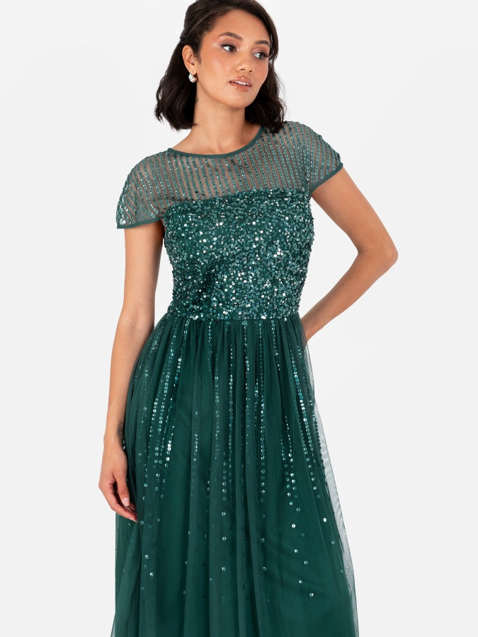 Maya Emerald Green Embellished Cap Sleeve Maxi Dress