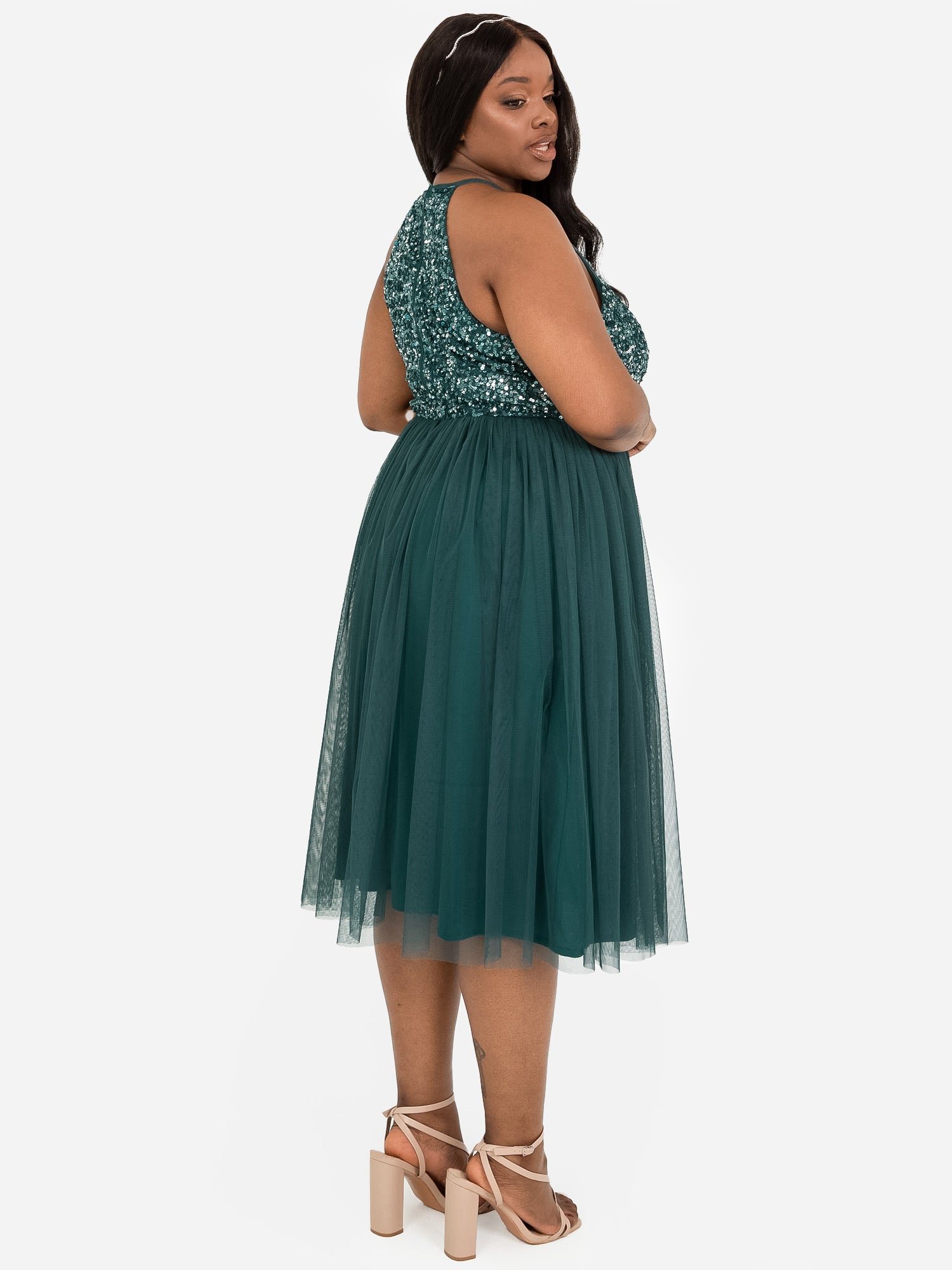 Maya Emerald Green Embellished Halter Neck Midi Dress