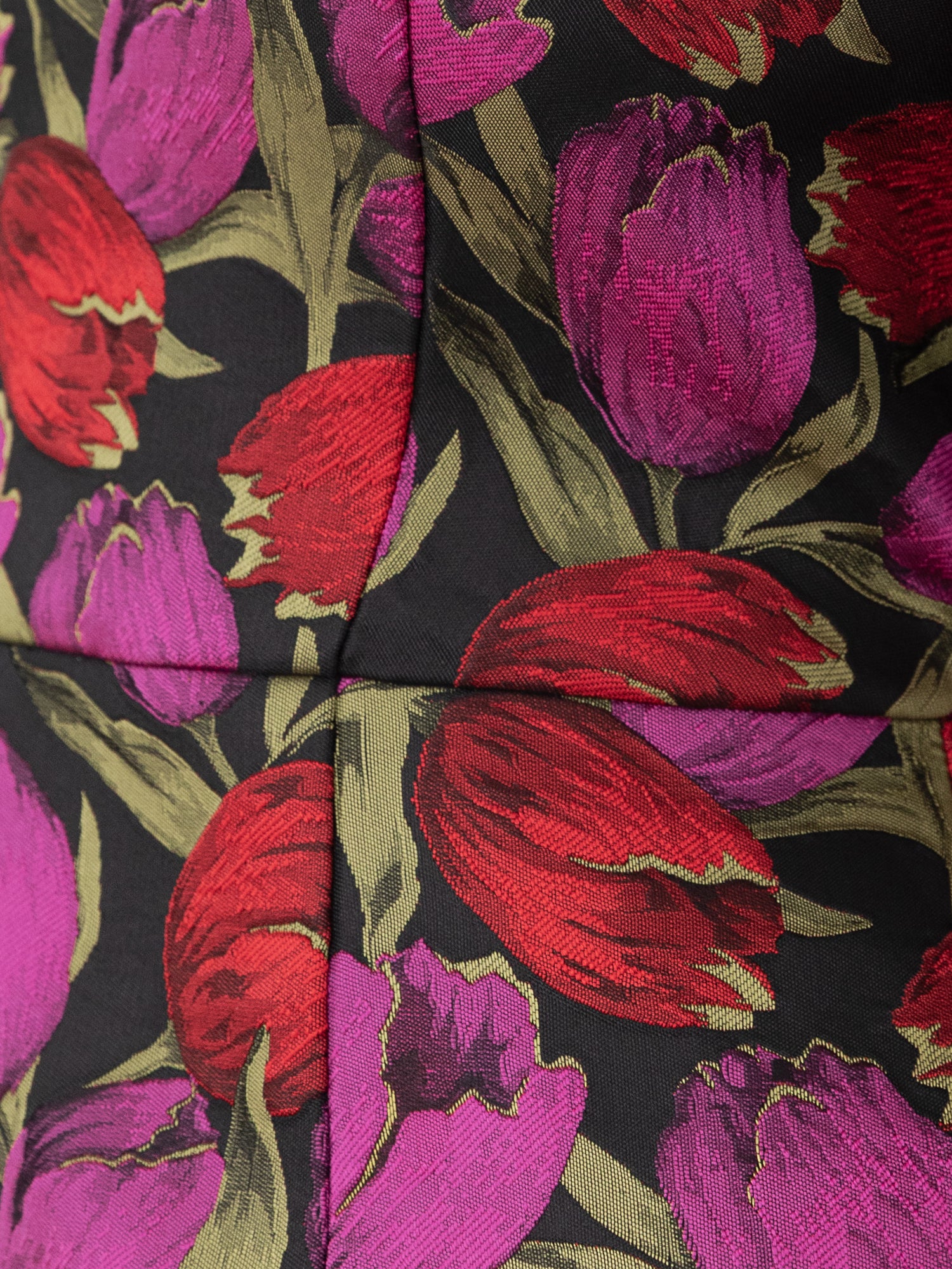A refined expression of contemporary femininity, this bodycon mini dress is defined by its sculpted neckline and impeccable craftsmanship. Crafted in richly textured jacquard, the pink and red floral motif is set against a dark base, creating depth and a sense of opulence. A Bardot neckline and softly puffed short sleeves introduce romantic contrast to the form-fitting silhouette, while the mini length lends youthful allure, ideal for evenings on the dance floor. Style with understated heels and minimalist accessories to let its tactile elegance take centre stage.