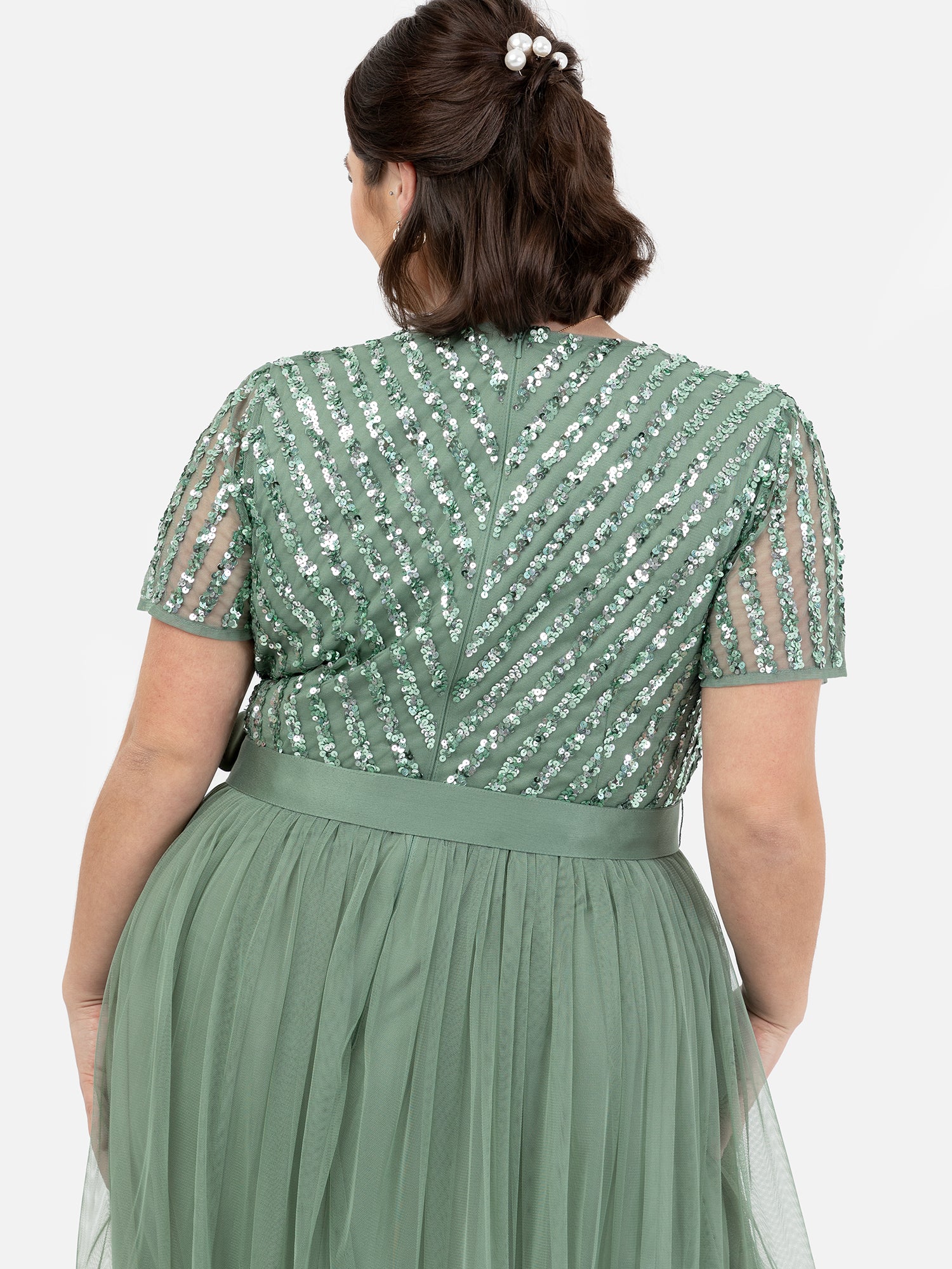 Maya Dark Sage Green Stripe Embellished Maxi Dress With Sash Belt