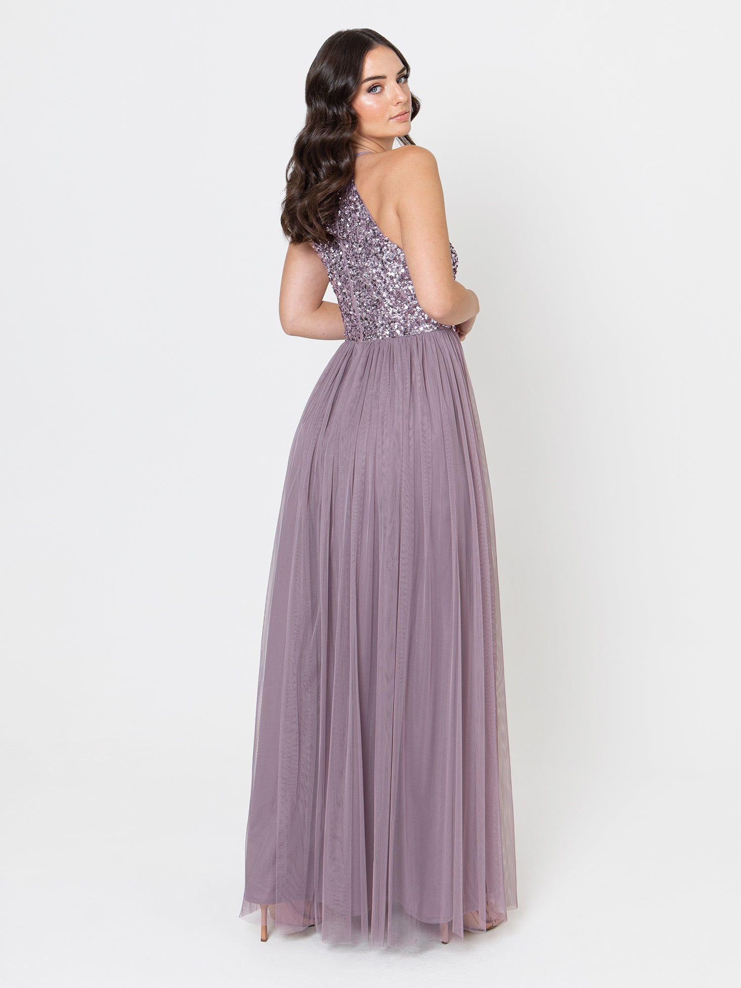 Maya Moody Lilac Embellished Halter Neck Maxi Dress