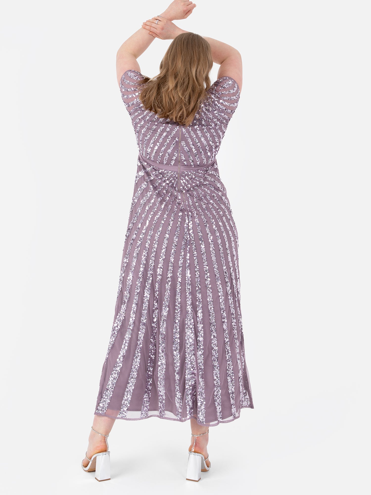 Maya Moody Lilac Short Sleeve Stripe Embellished Maxi Dress