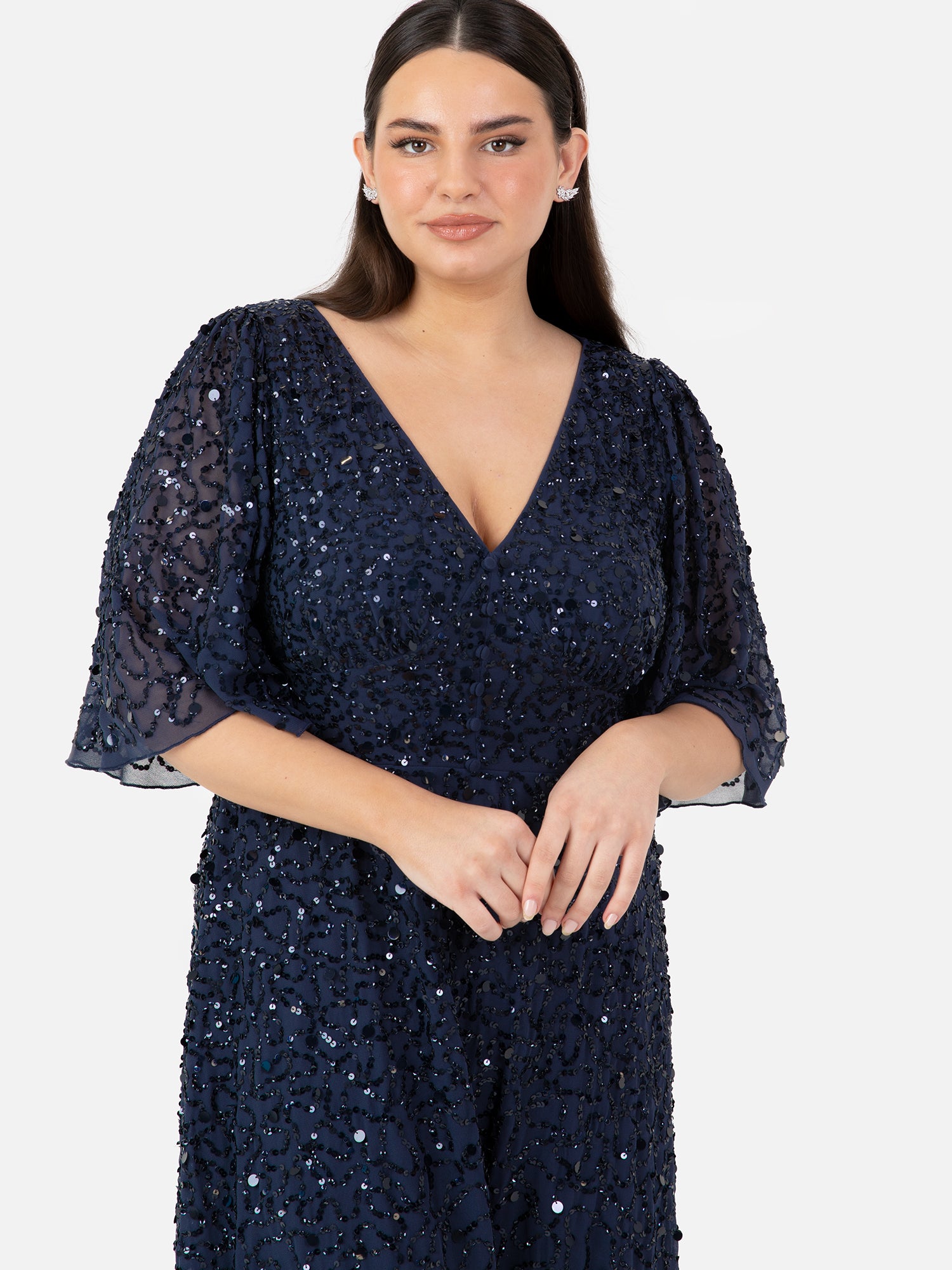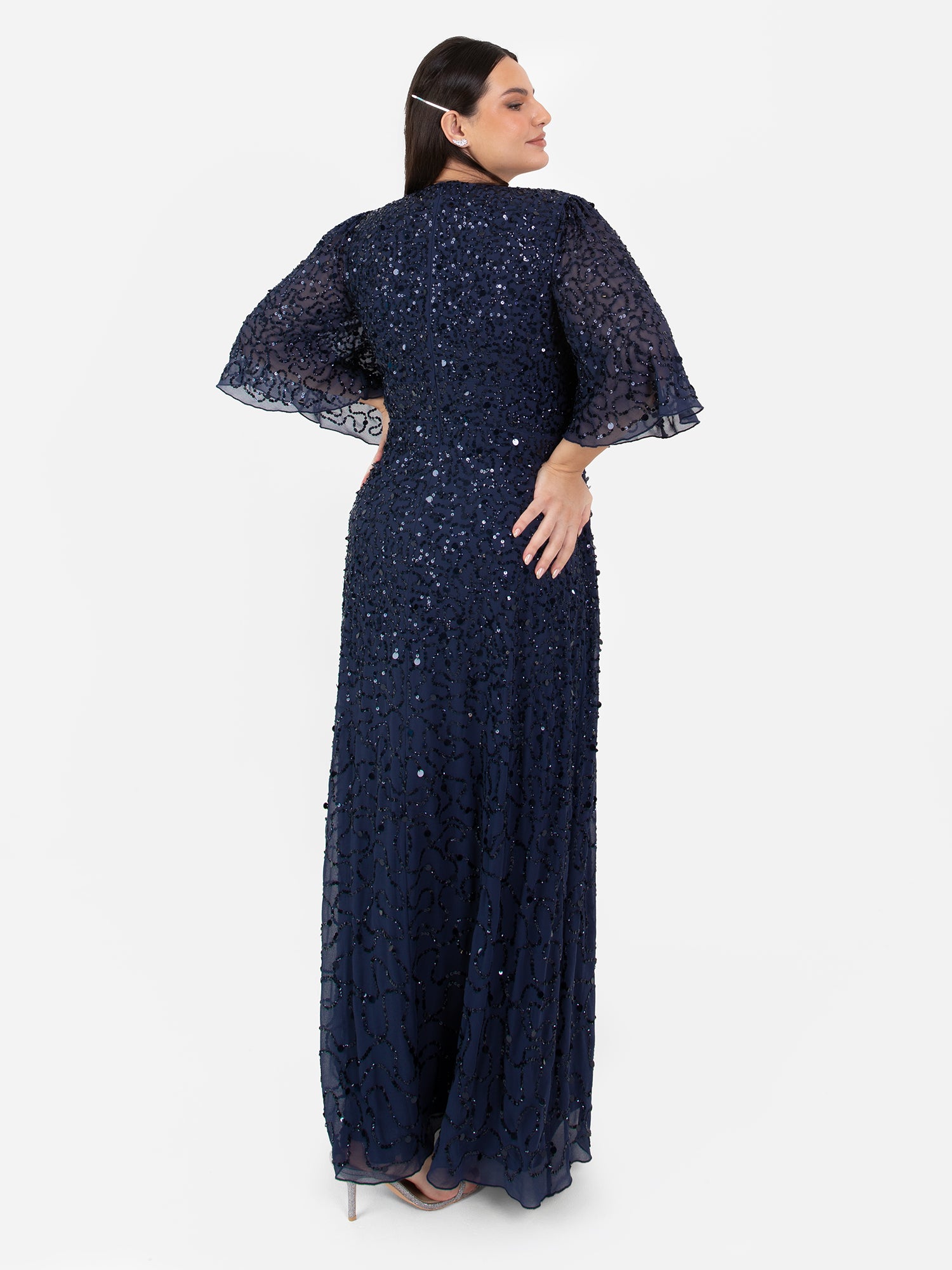 Maya Navy Fully Embellished Angel Sleeve Maxi Dress