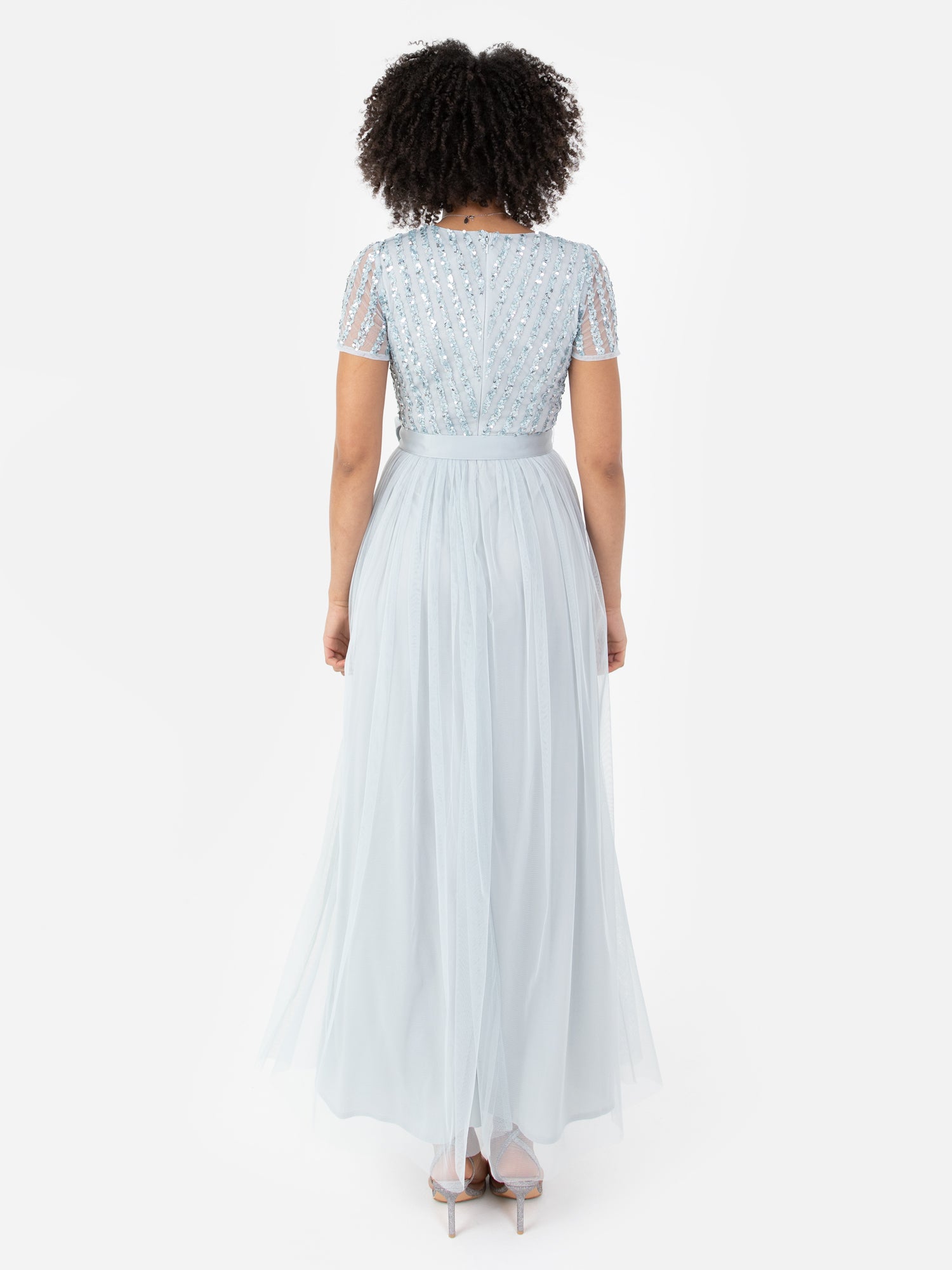 Maya Pale Blue Stripe Embellished Maxi Dress With Sash Belt