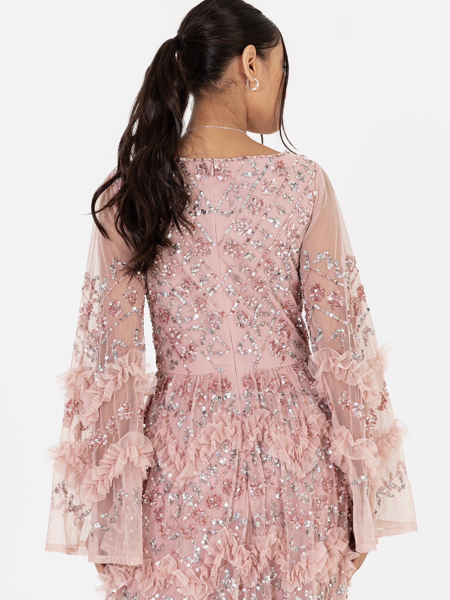 Maya Pink Fully Embellished Maxi Dress with Frill Detail