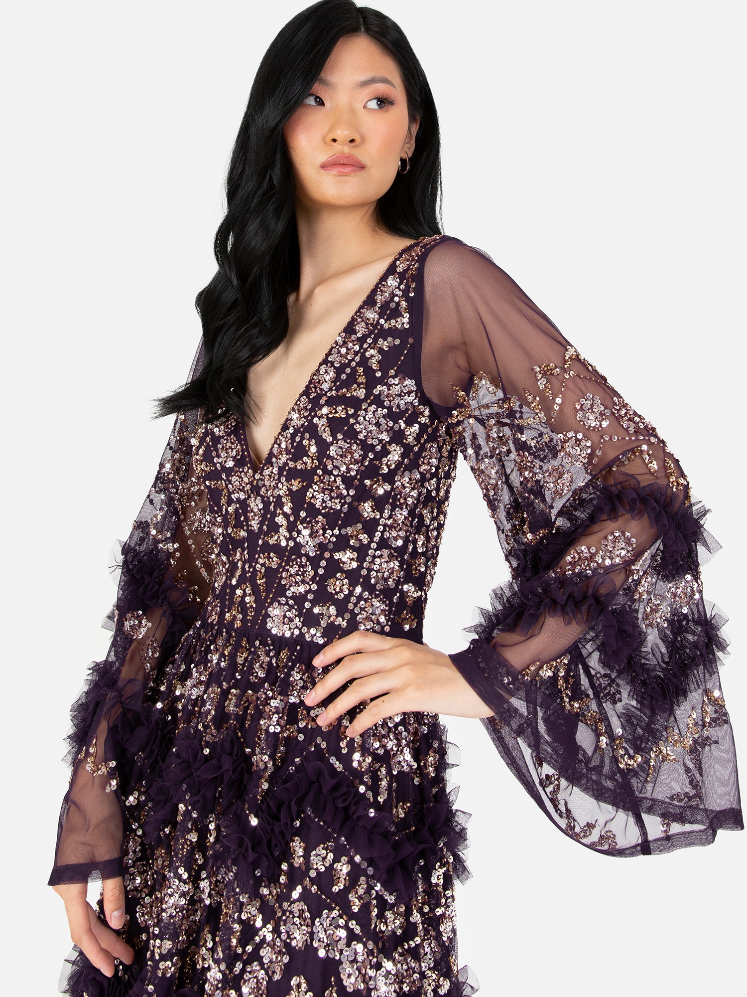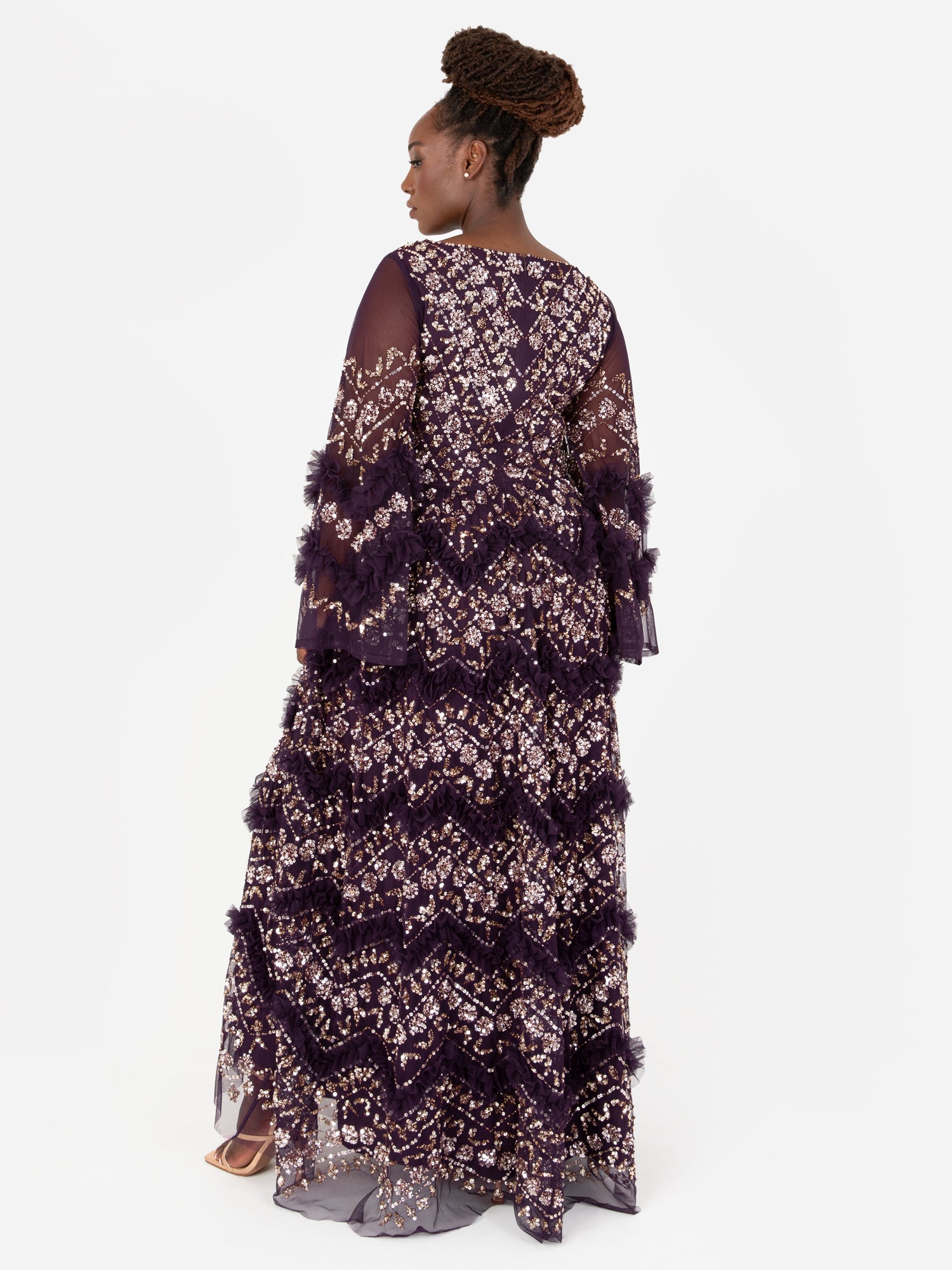 Maya Purple Fully Embellished Maxi Dress With Frill Detail