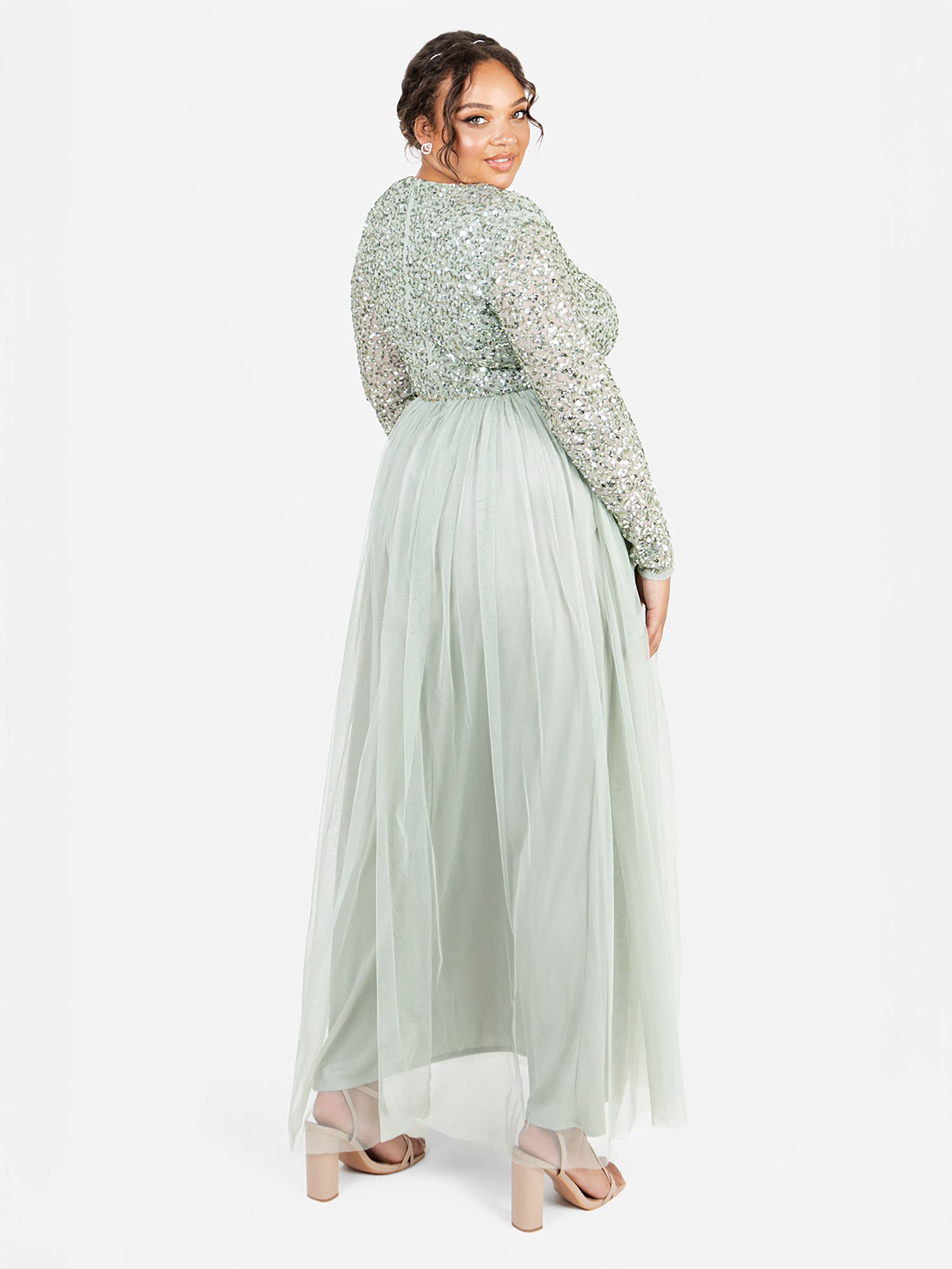 Maya Sage Green Embellished Long Sleeve Maxi Dress