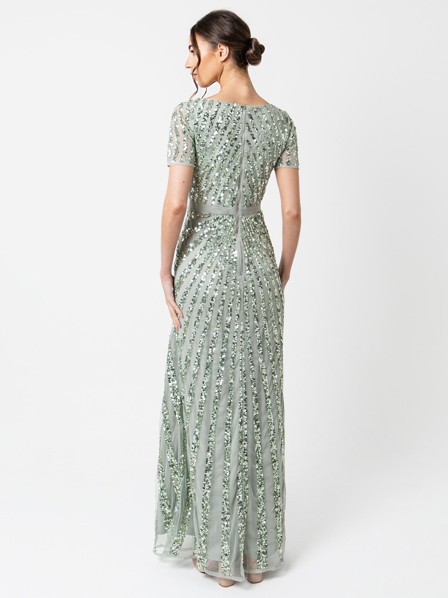 Maya Sage Green Short Sleeve Stripe Embellished Maxi Dress