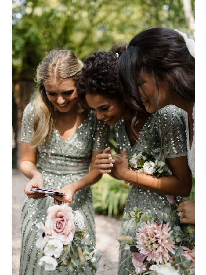 Made for evening balls and red carpet events this Sage Green gown will complement your figure with a fitted bodice and lightly flared maxi skirt. Radiating from the waist are hand sewn silver sequin stripes that create an immersive feeling not just for yourself but everyone in the room. For a showstopping look style this dress with Hollywood waves red lip and strappy heels.
