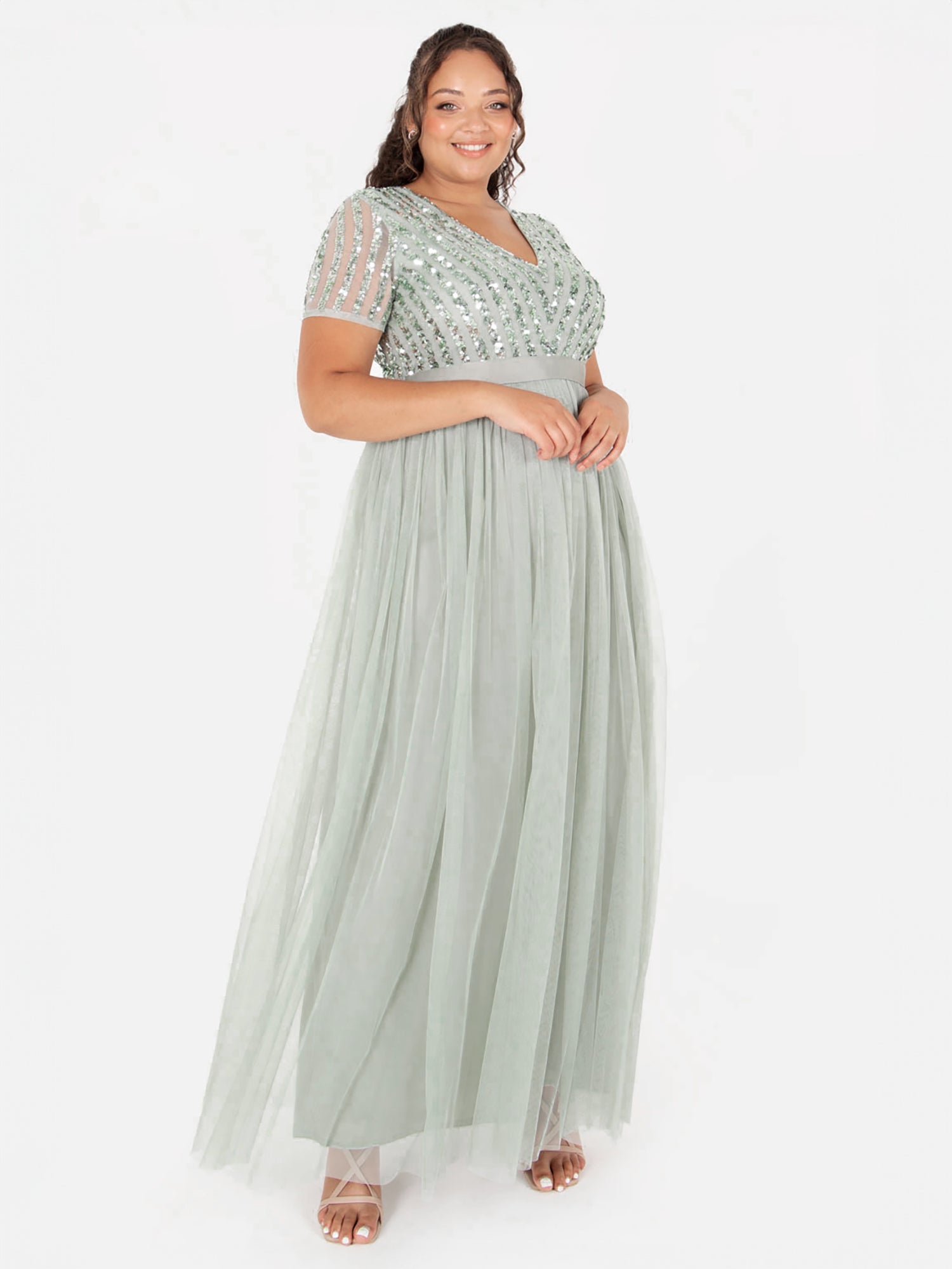 Maya Sage Green Stripe Embellished Maxi Dress With Sash Belt