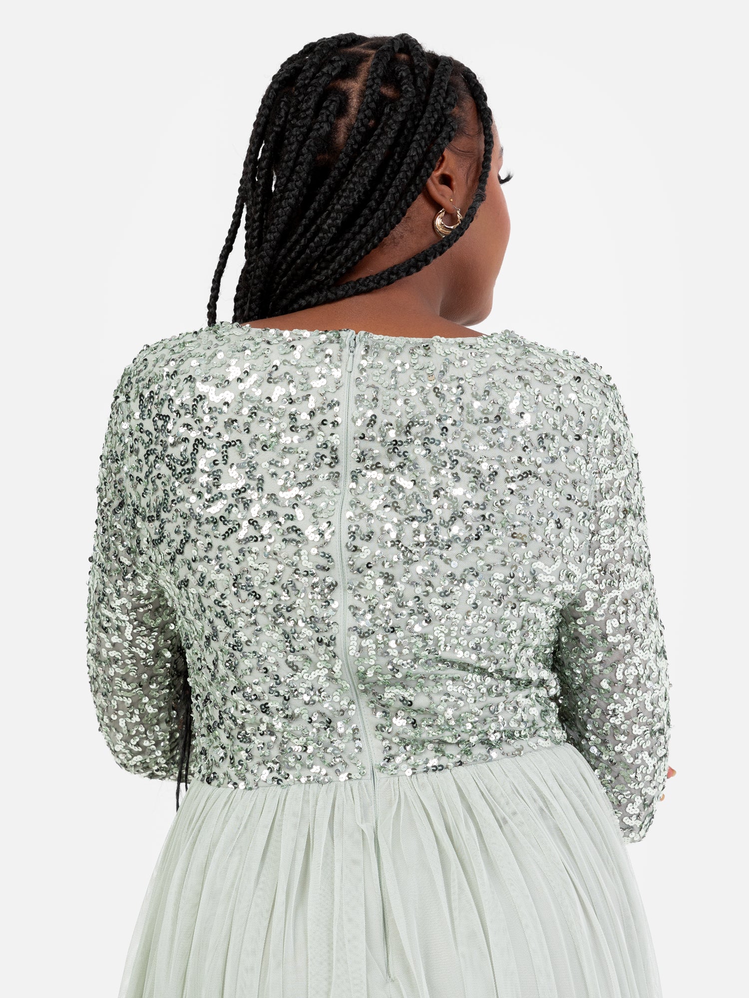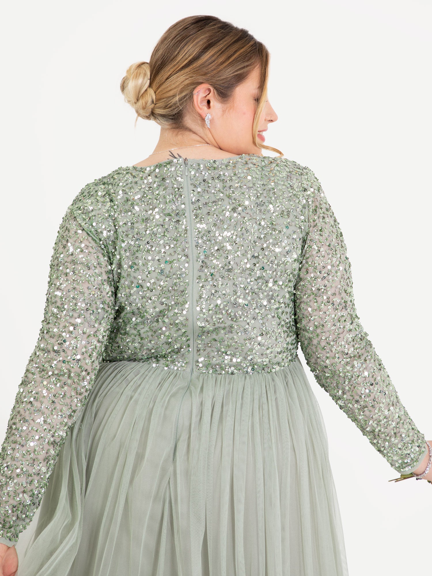 Maya Sage Green V Neck Embellished Long Sleeve Maxi Dress