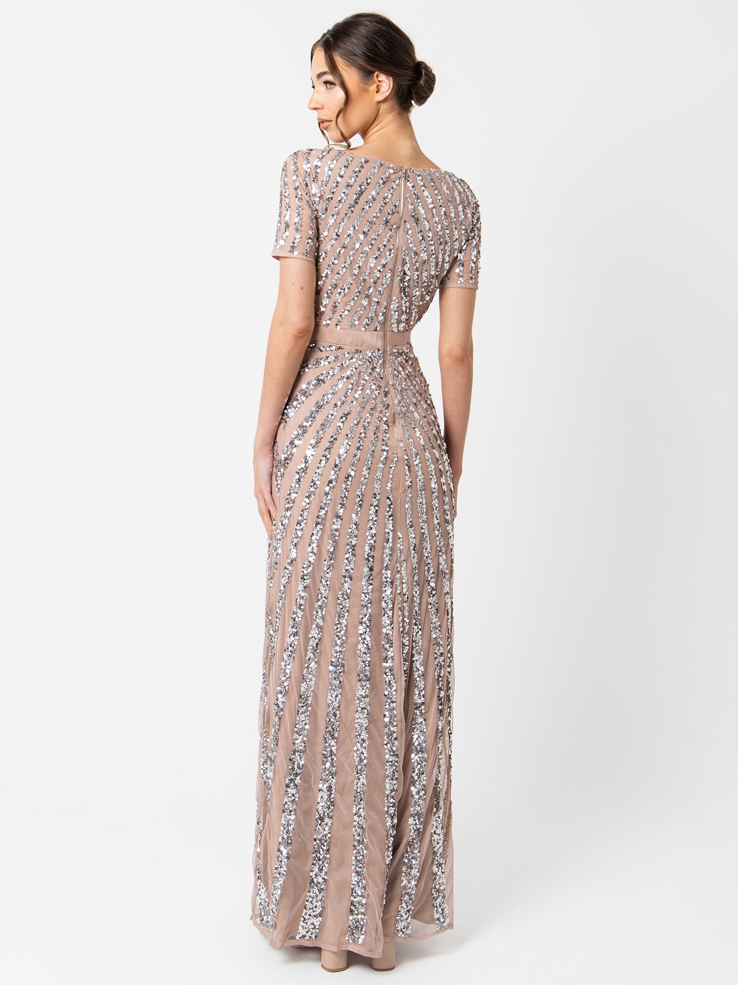 Maya Taupe Blush Short Sleeve Stripe Embellished Maxi Dress