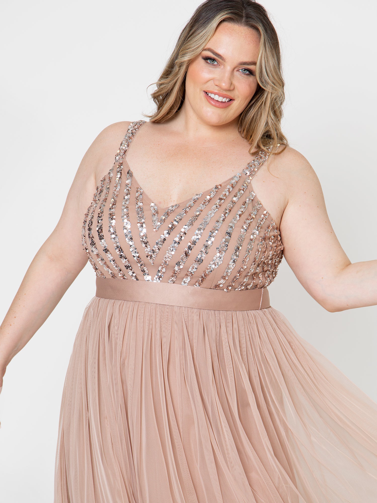 Maya Taupe Blush Sleeveless Stripe Embellished Maxi Dress