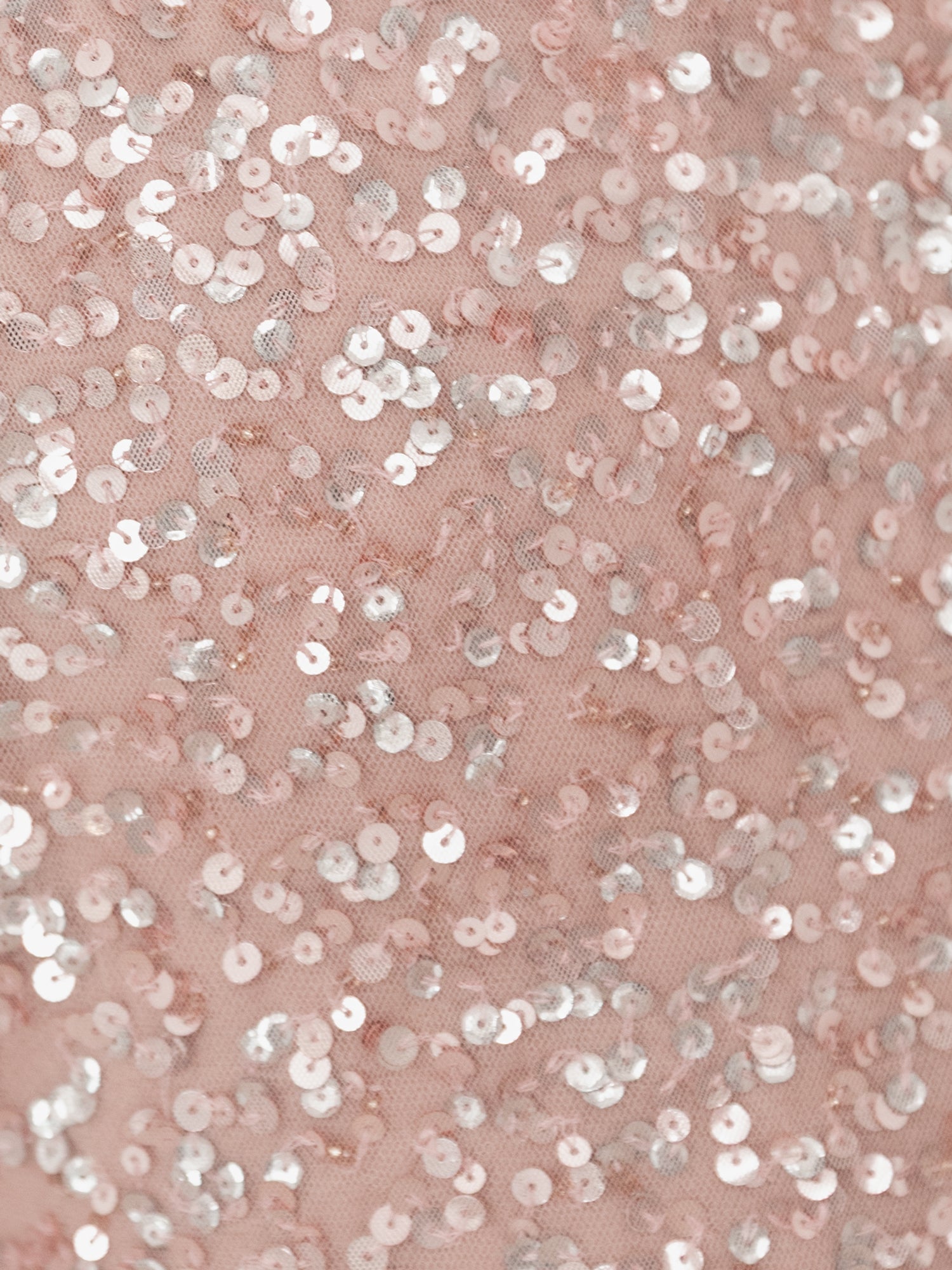 Mini Maya Frosted Pink Delicate Sequin Midi Dress with Bow