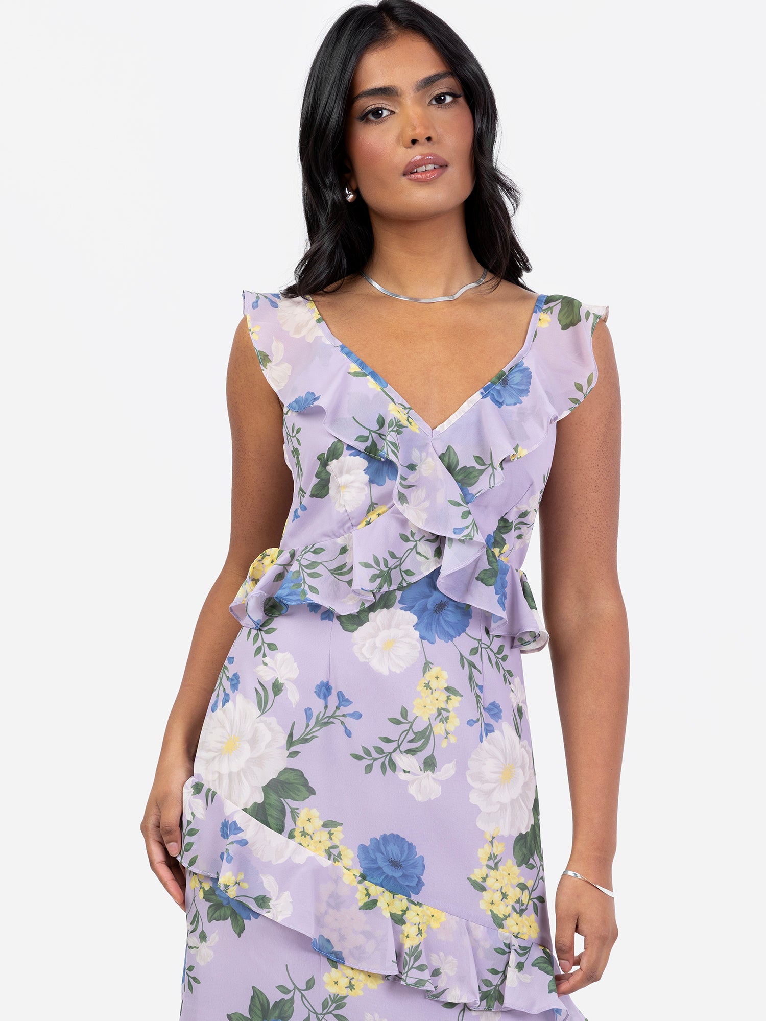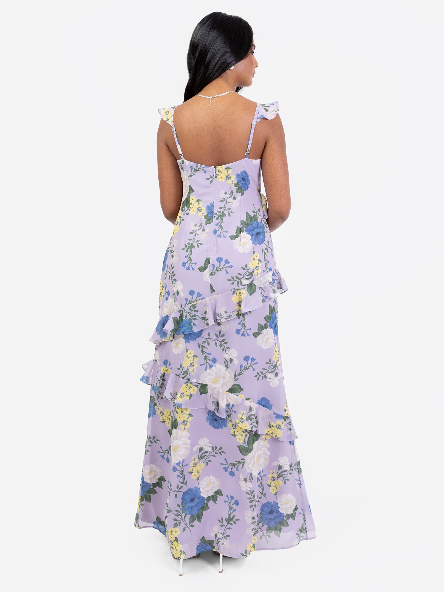 Anaya With Love Floral Strappy Lilac Maxi Dress with Ruffle Detail