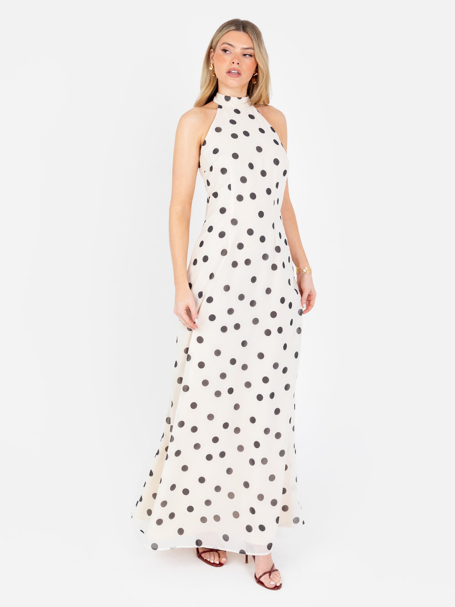 Anaya With Love Recycled Polka Dot Halter Neck & Open Back Maxi Dress